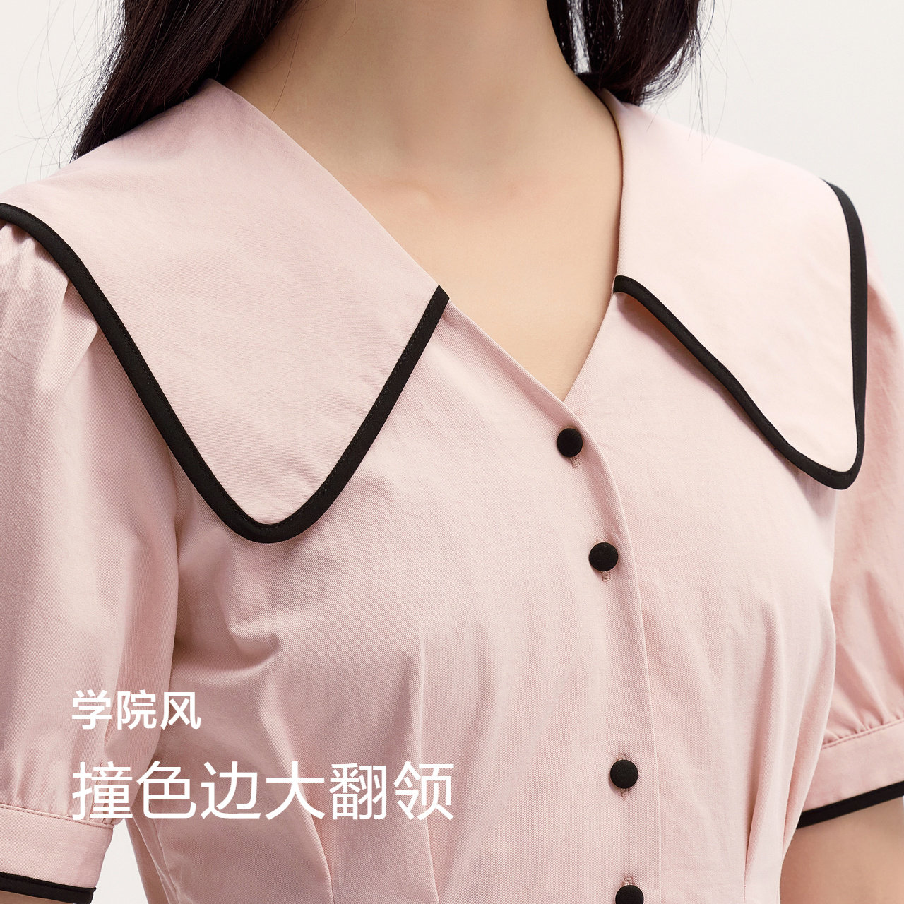 撞色大翻领学院风 泡泡袖加点甜 收腰显瘦