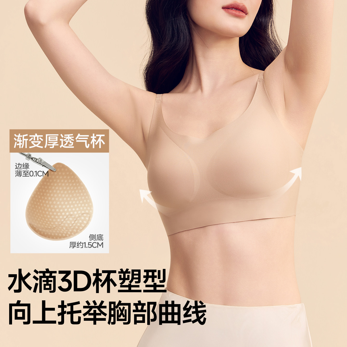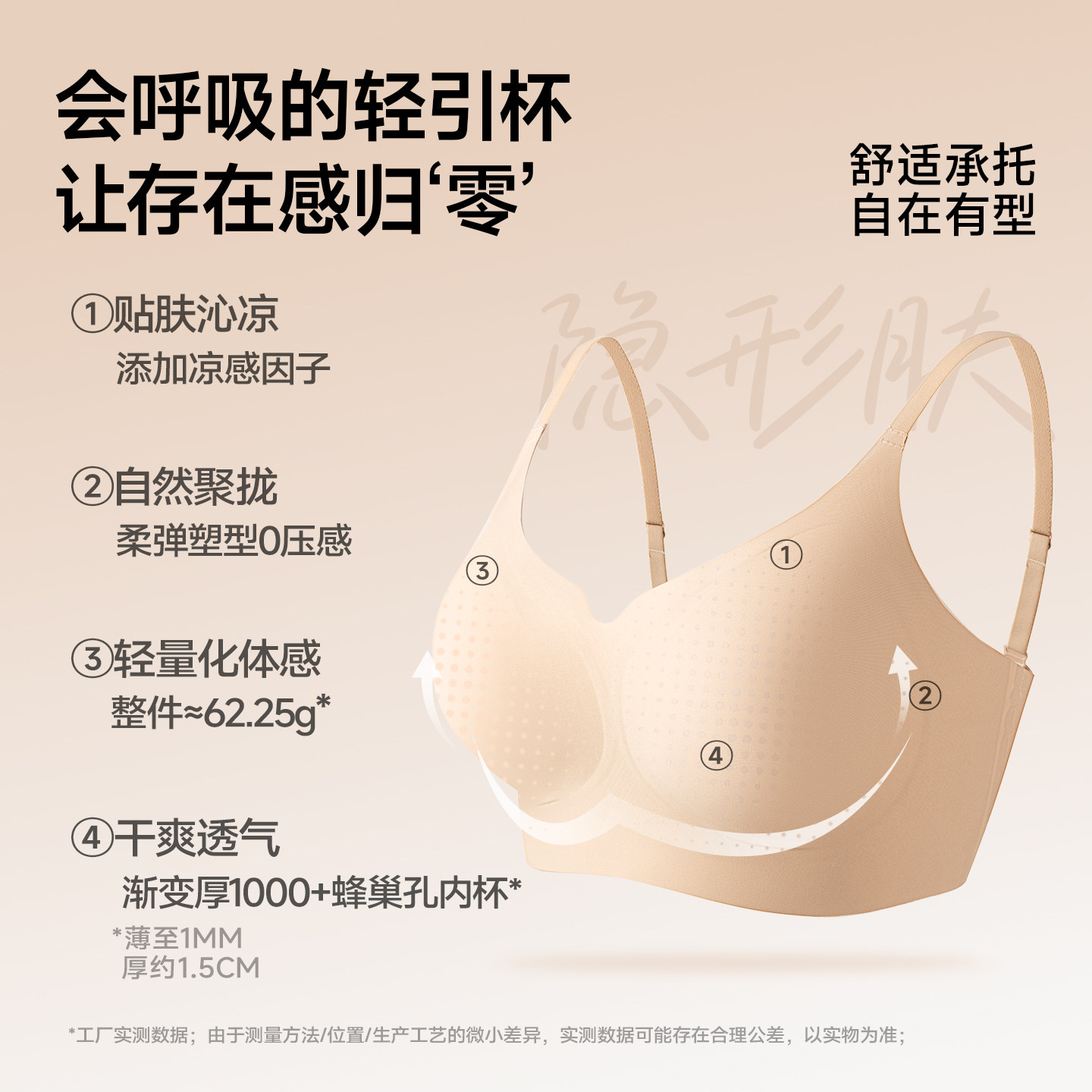 【林允同款】猫人蜂巢轻引杯无痕粉底液内衣女隐形聚拢细肩带文胸