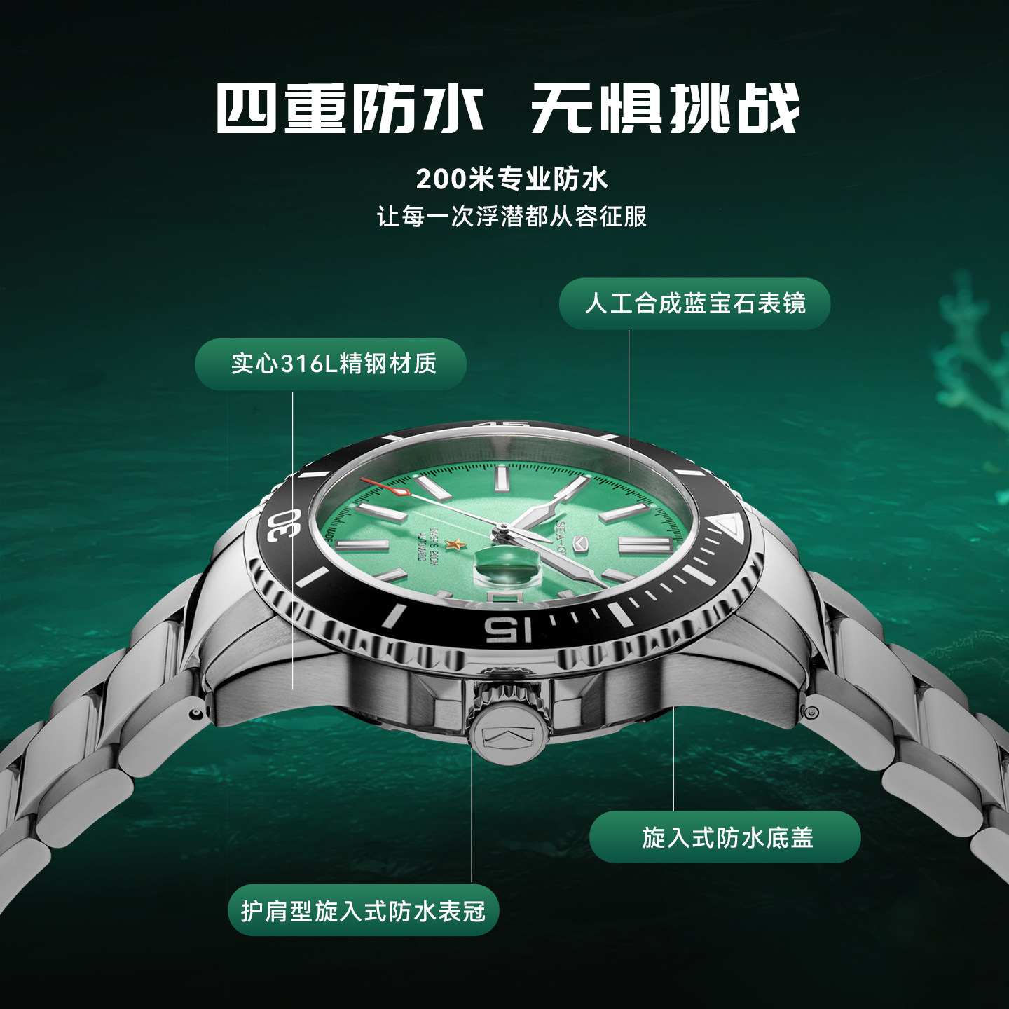 海鸥表自动机械表海洋系列夜光深度潜水表手表多彩男表1523