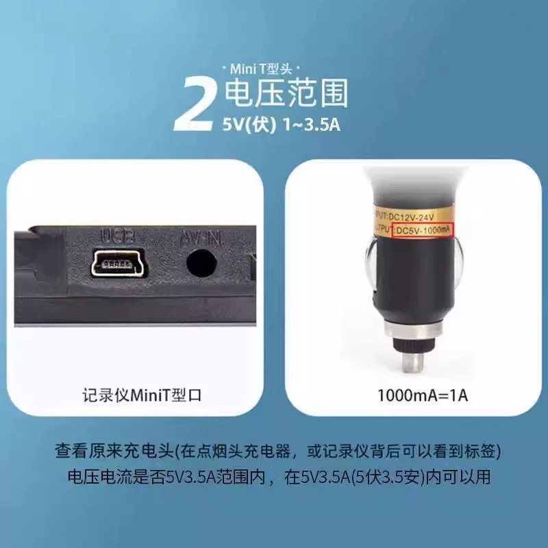 行车记录仪电源线3.5米加粗线车载电子狗导航GPS车载流媒体车充线