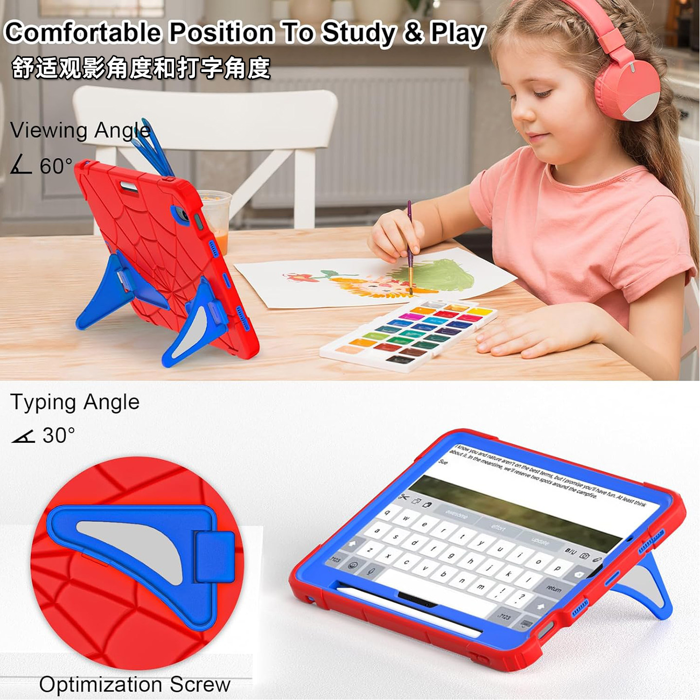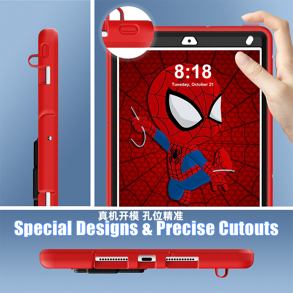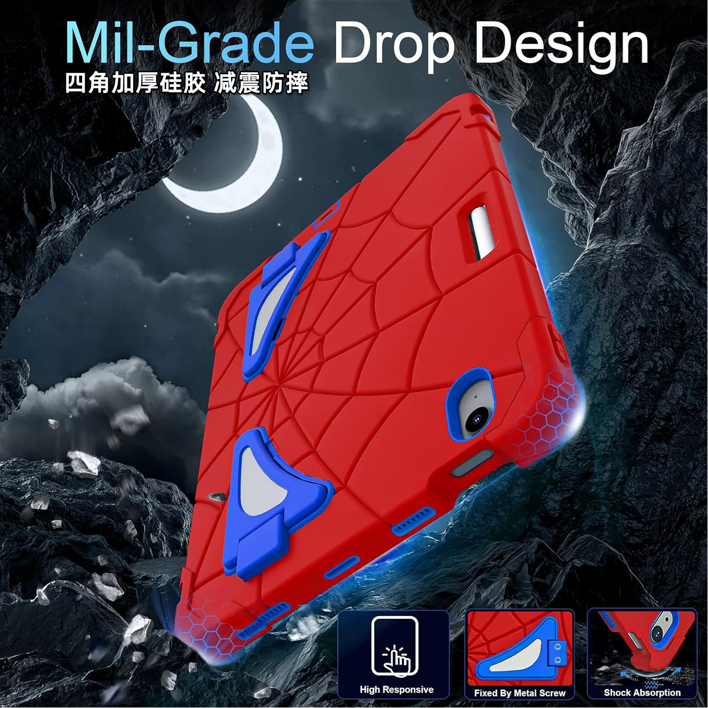 适用ipad10保护壳苹果平板套air2pro11寸2024款A16 11代air7第6代9代防摔防弯壳带双支架儿童蜘蛛纹硅胶全包