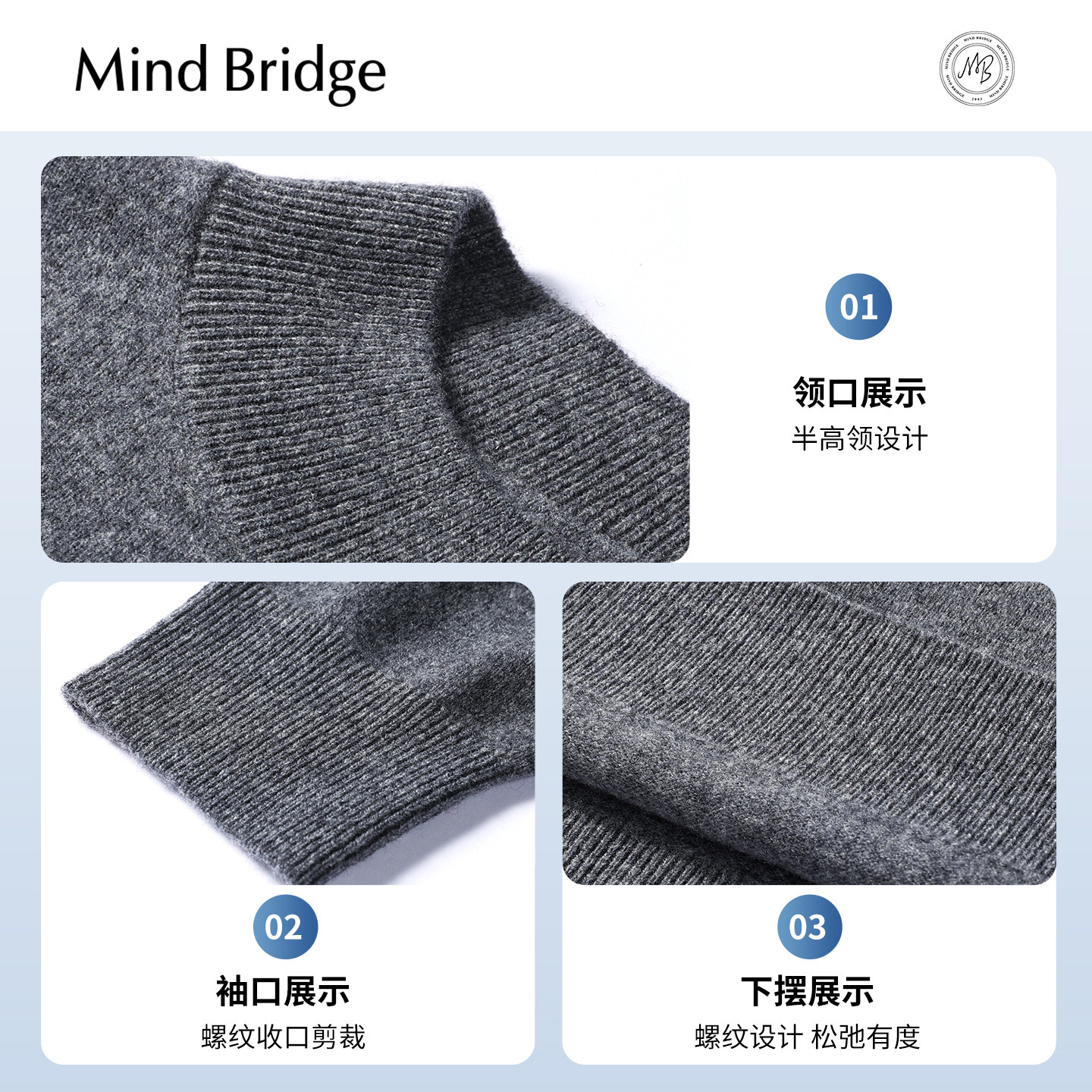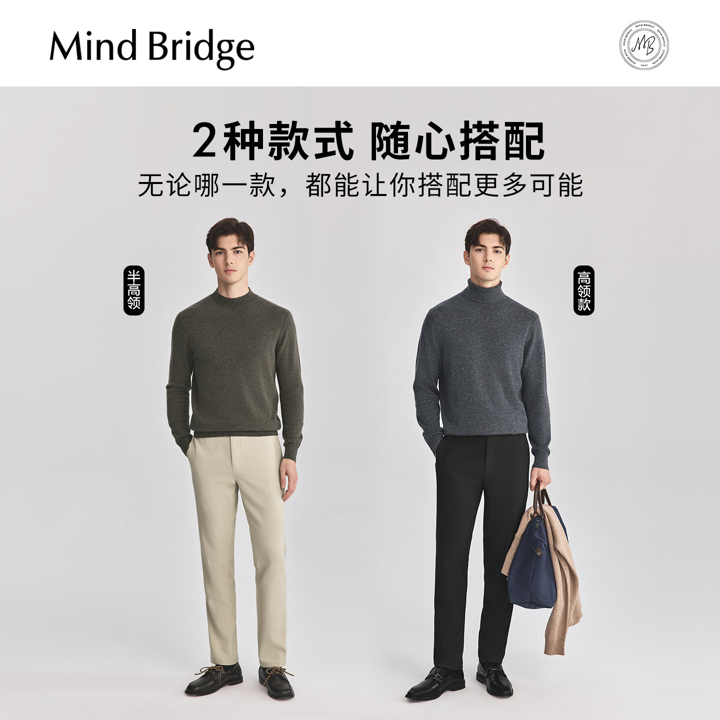 Mind Bridge男士半高领毛衣纯色打底线衣2025年冬宽松高领针织衫