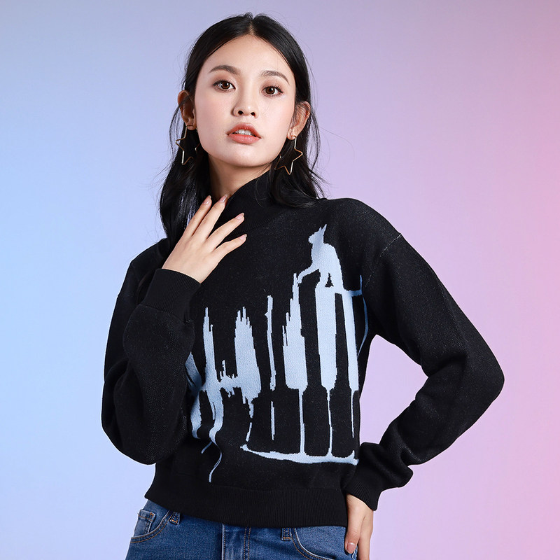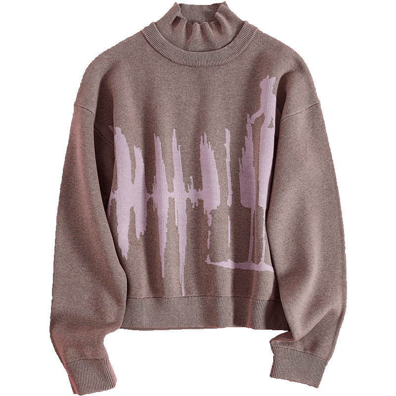 LS真维斯女装冬季保暖上衣时尚潮流针织衫时髦洋气提花高领毛衣女