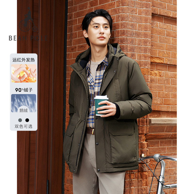 【新品】90%鹅绒BEANPOLE滨波秋冬男商务休闲连帽发热羽绒服外套