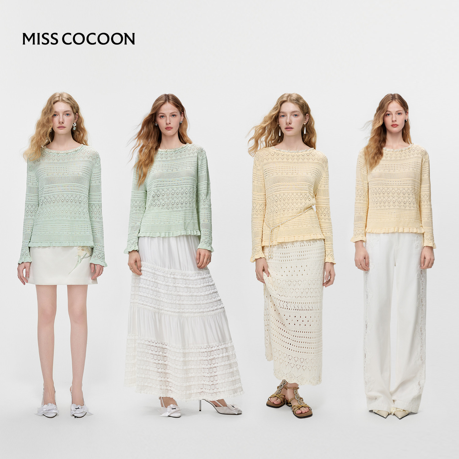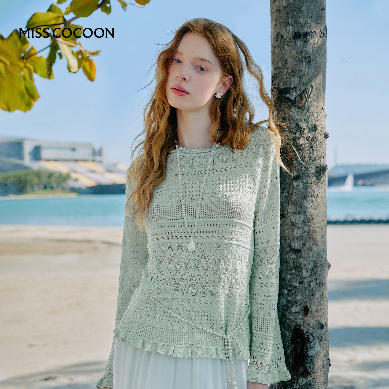 MISSCOCOON可可尼绿色罩衫上衣女2026春季新款宽松条纹毛针织衫