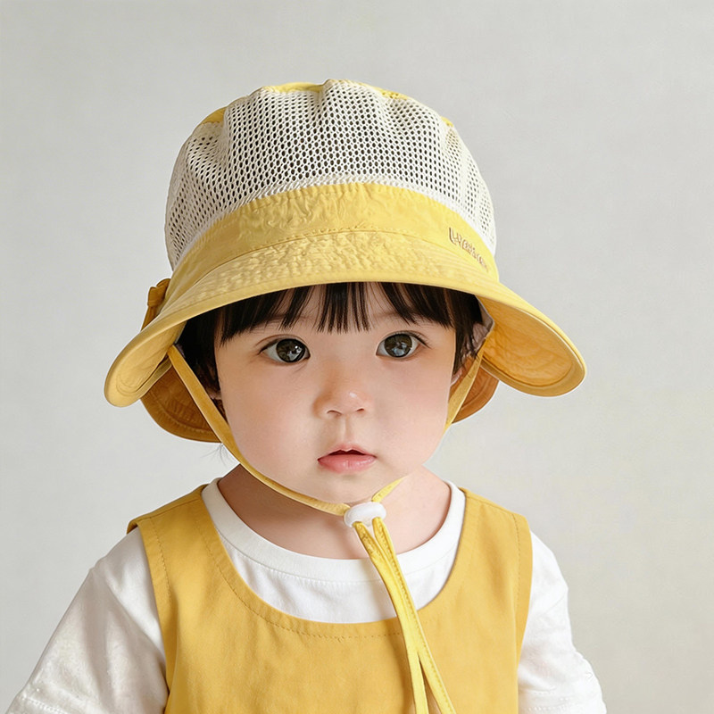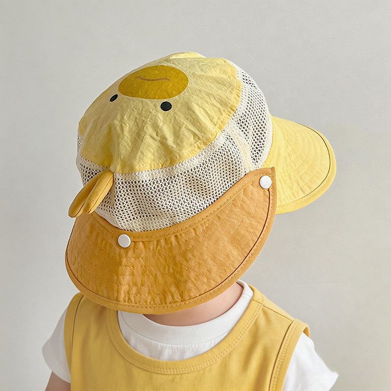 宝宝帽子夏季薄款透气网眼防晒帽卡通男女儿童出游户外披肩遮阳帽