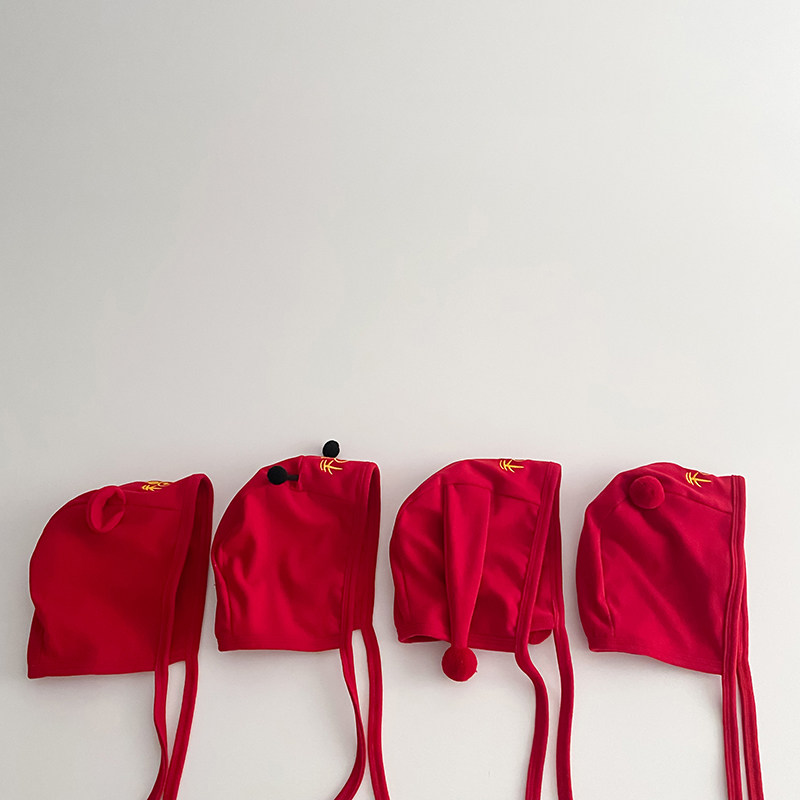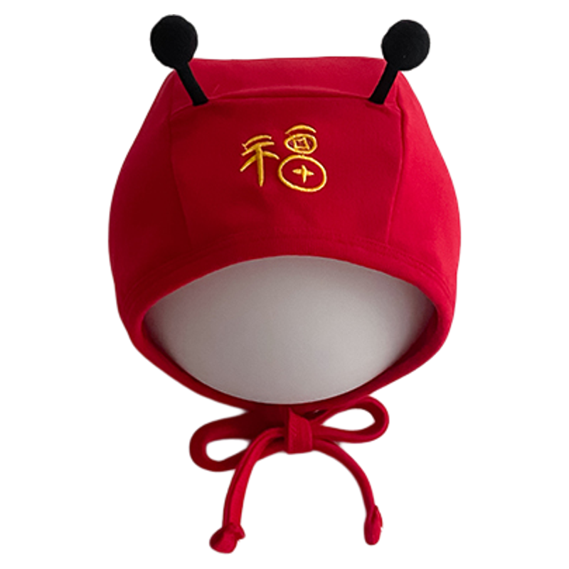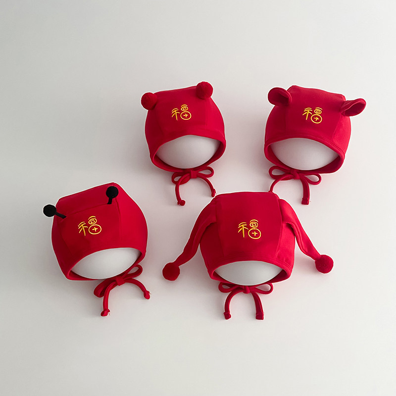 婴儿红色帽子春秋冬百天护囟门包头帽宝宝小月龄喜庆新生防风胎帽