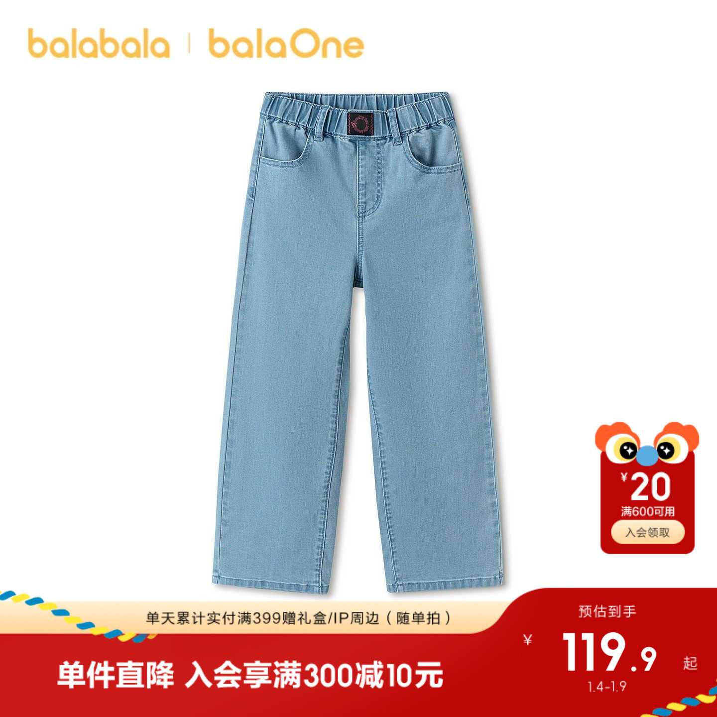 巴拉巴拉童装女童长裤宽松直筒牛仔裤2026春装新款大童裤子休闲潮