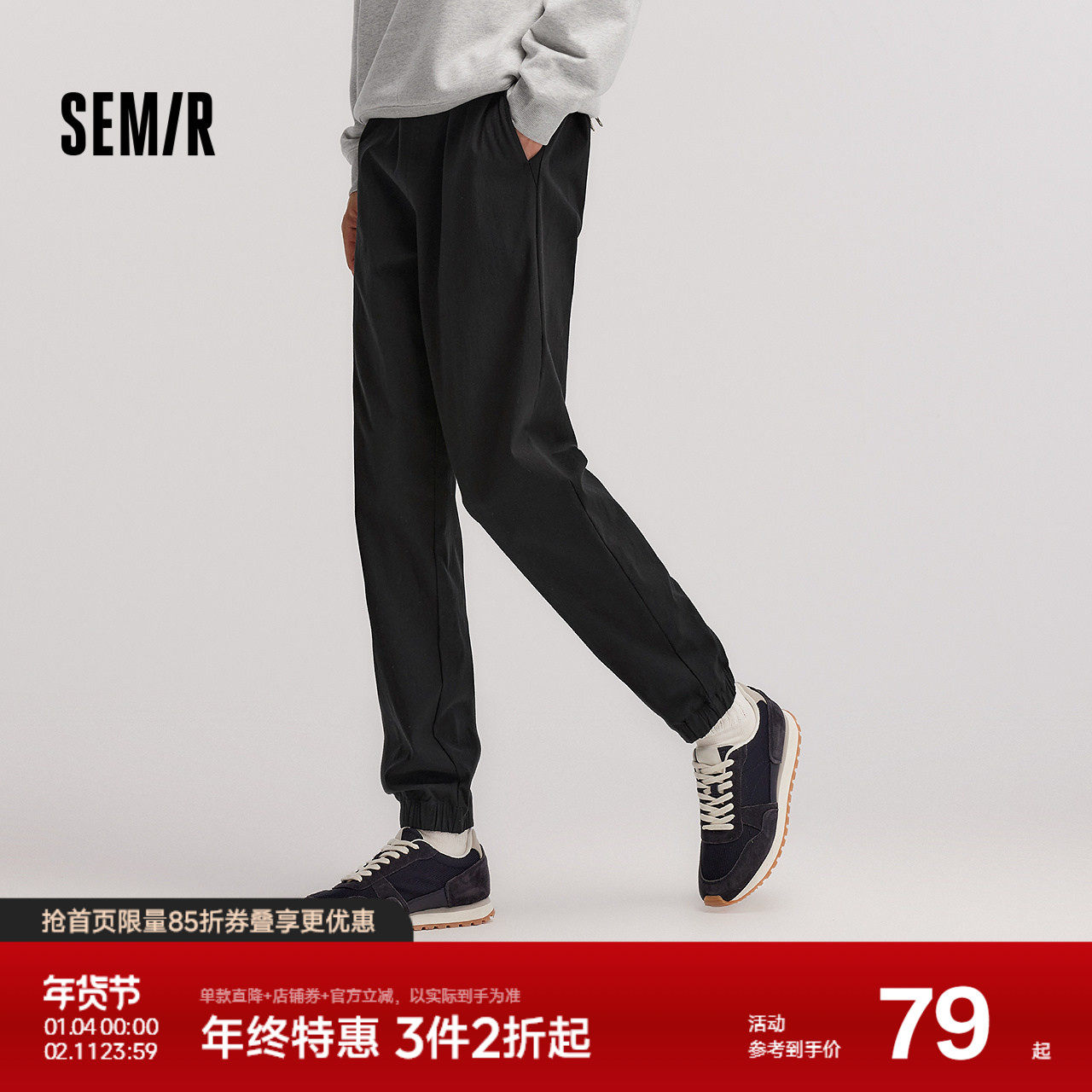 舒服裤|森马休闲裤男款运动束脚裤黑色裤子冬季锥形长裤基础百搭