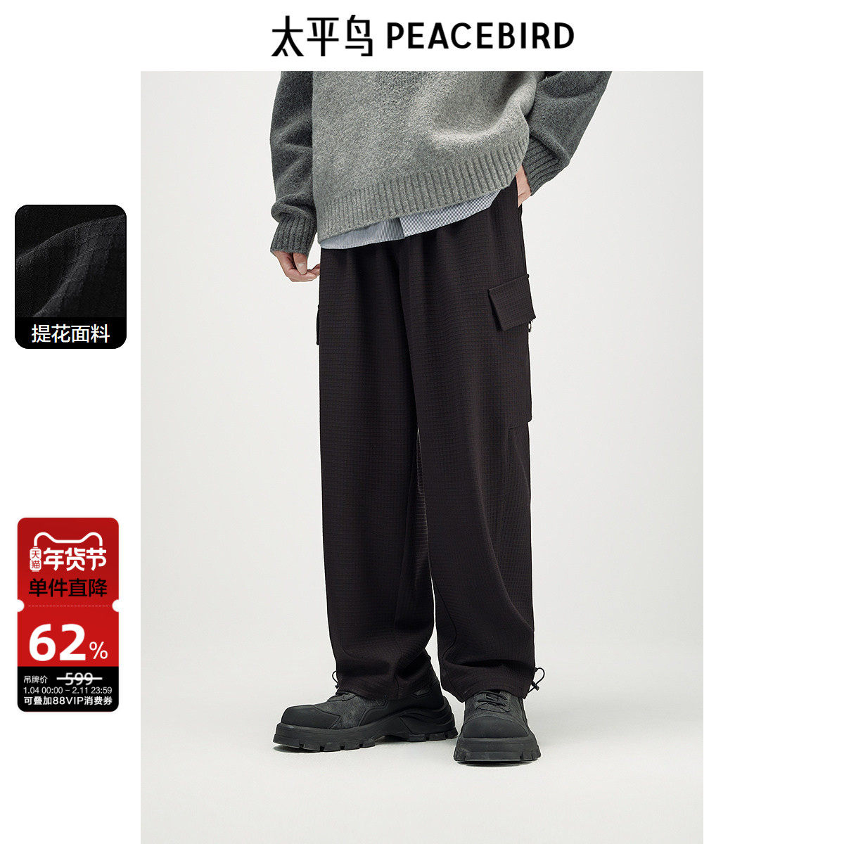 太平鸟男装 时尚休闲裤复古立体提花工装口袋户外感束脚裤男长裤