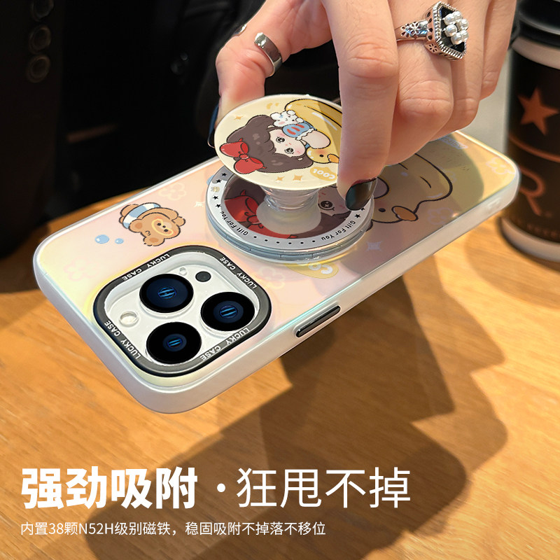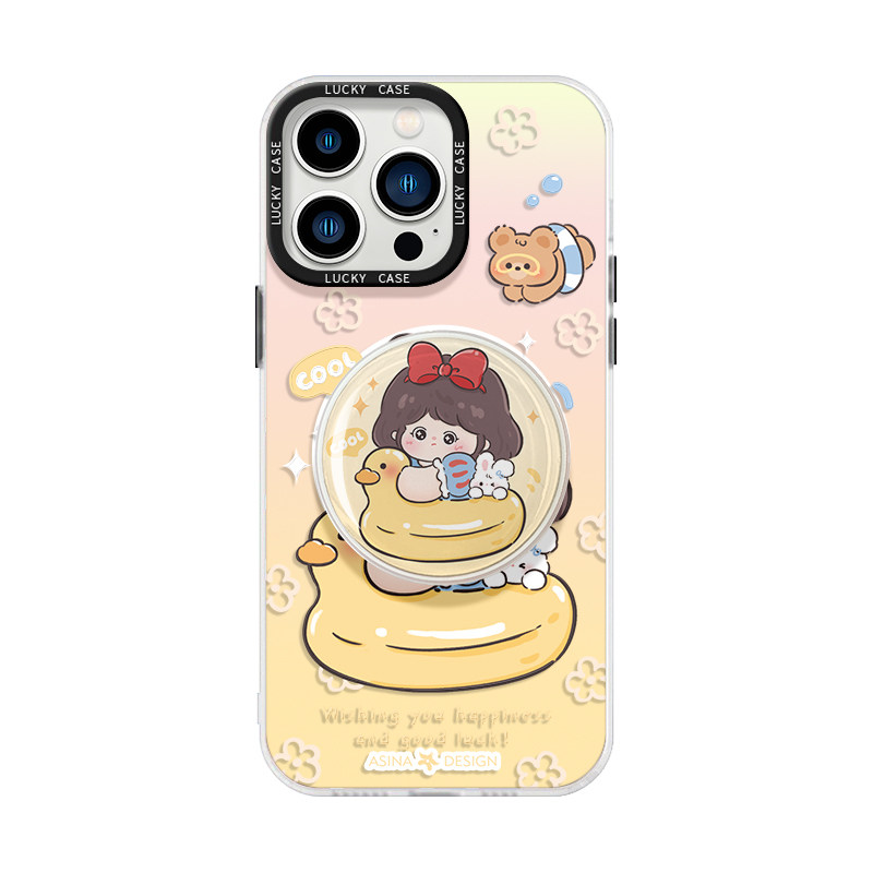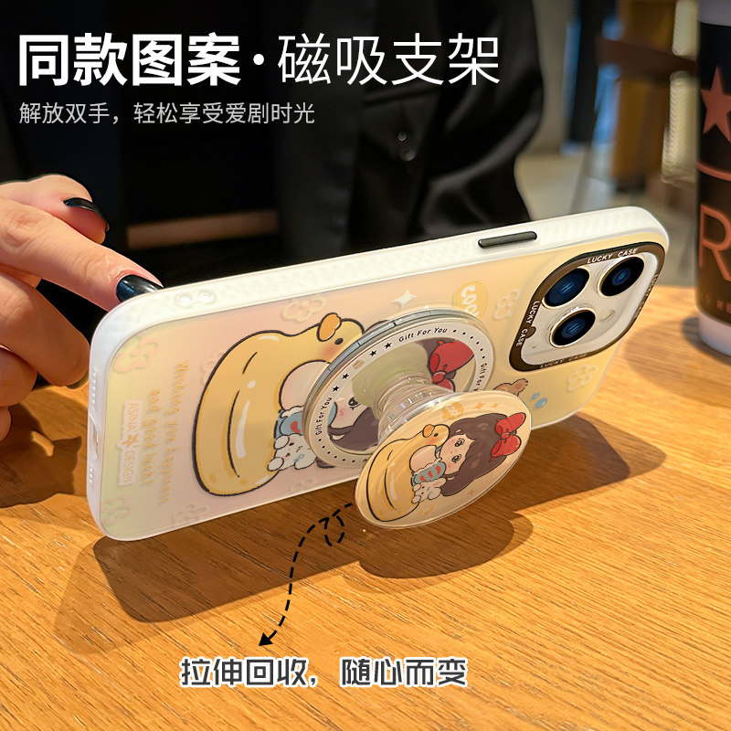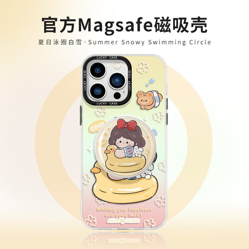 泳圈白雪适用苹果17promax手机壳新款iPhone15镭射磁吸支架可爱ip16Pro全包套12创意13pm防摔女14网红高级感