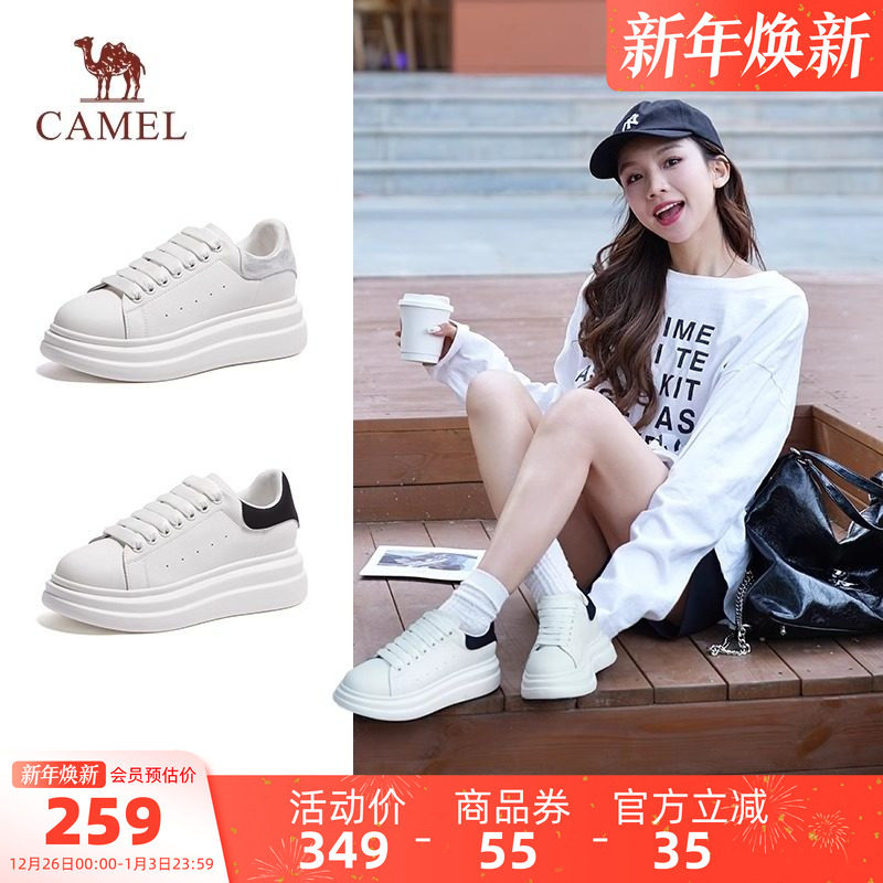 骆驼女鞋2025秋季新款圆头面包鞋轻盈厚底小白鞋女休闲百搭板鞋女
