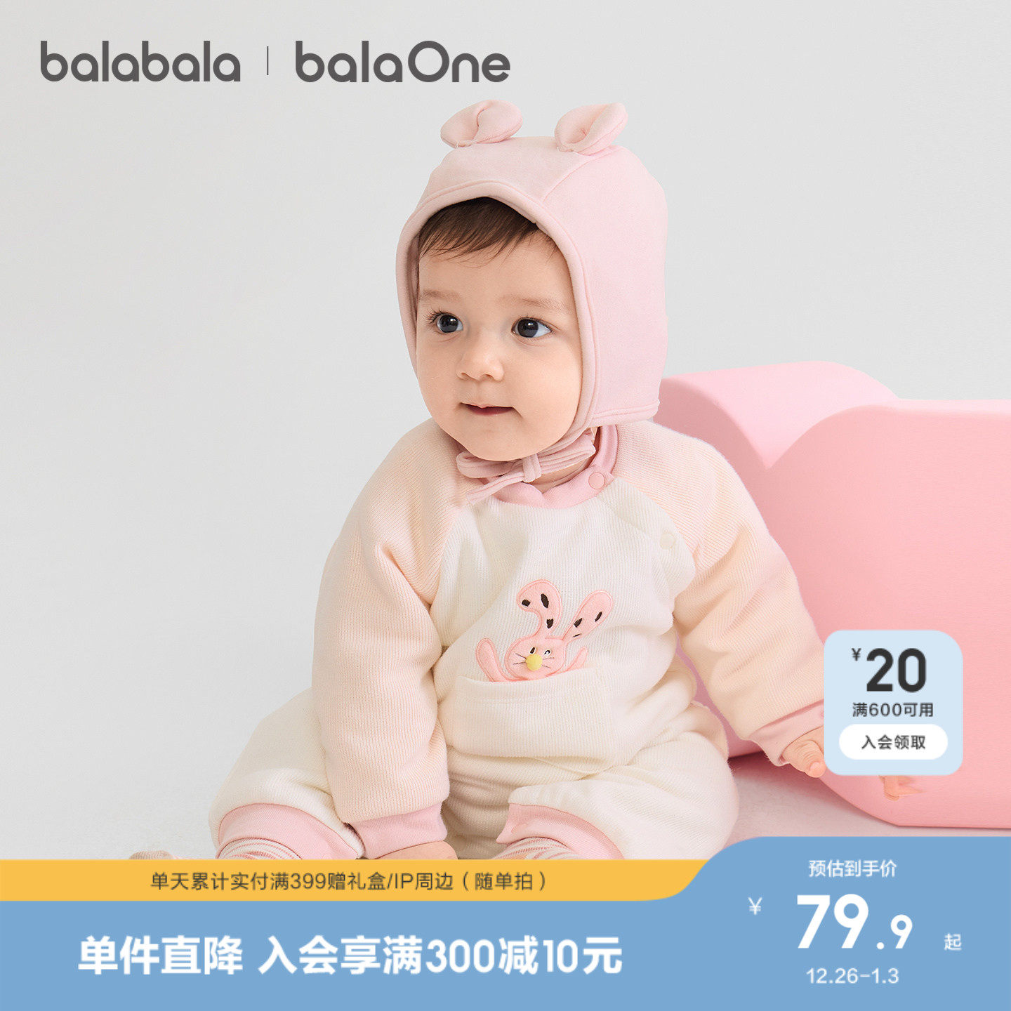 babycare冬季保暖山茶花连体衣宝宝包屁衣新生儿爬服外出婴儿衣服