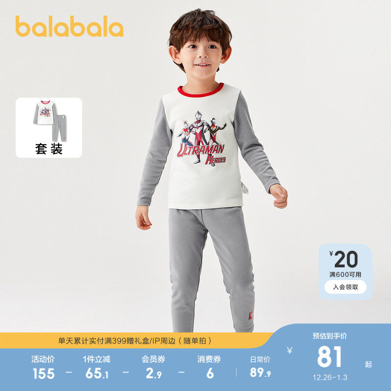 【奥特曼IP】巴拉巴拉男童秋衣秋裤套装秋冬柔软打底睡衣舒适亲肤
