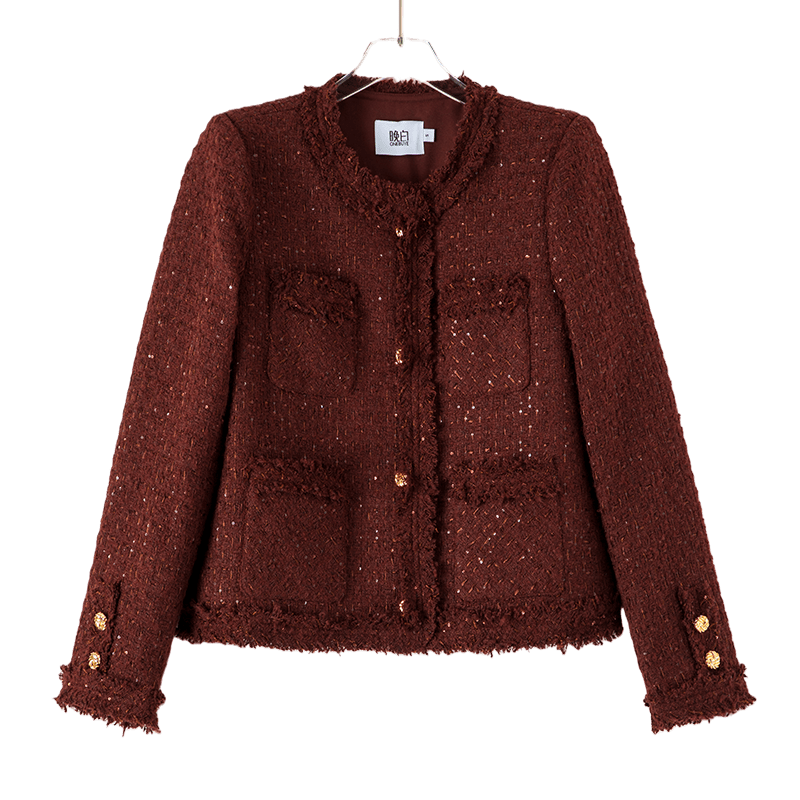 晚白2025秋冬新款时尚新年小香风亮闪闪羊毛毛呢外套短款女上衣