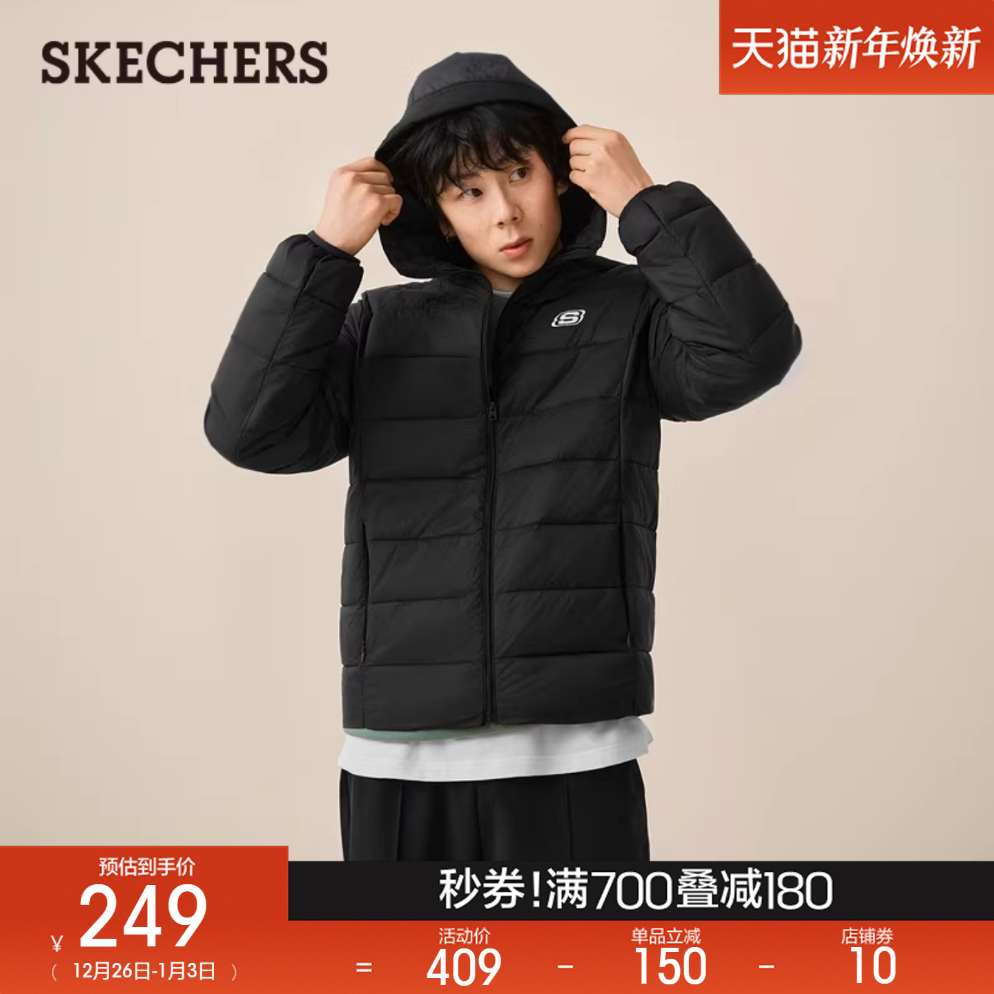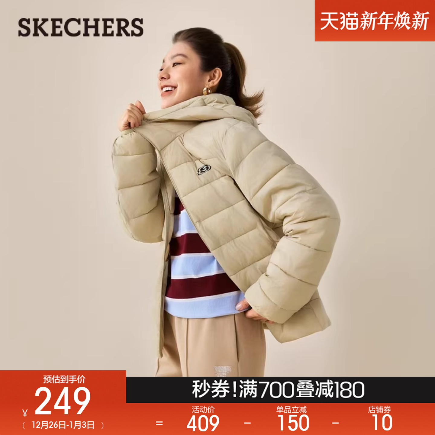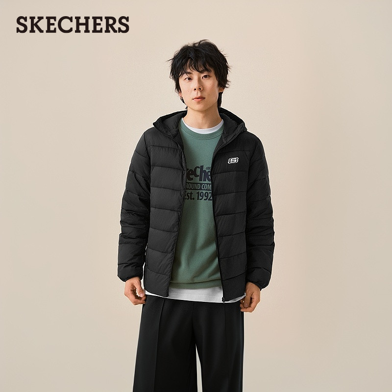 斯凯奇2025冬季新款男女同款连帽棉服百搭保暖时尚柔软叠穿外套