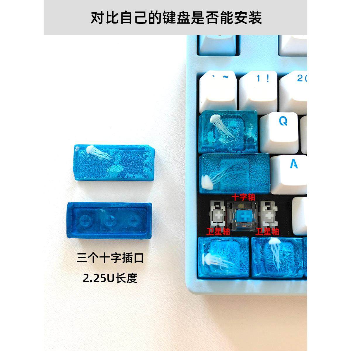 DIY深蓝色海洋水母滴胶机械ESC空格键shifttabcaps键键盘主题键帽