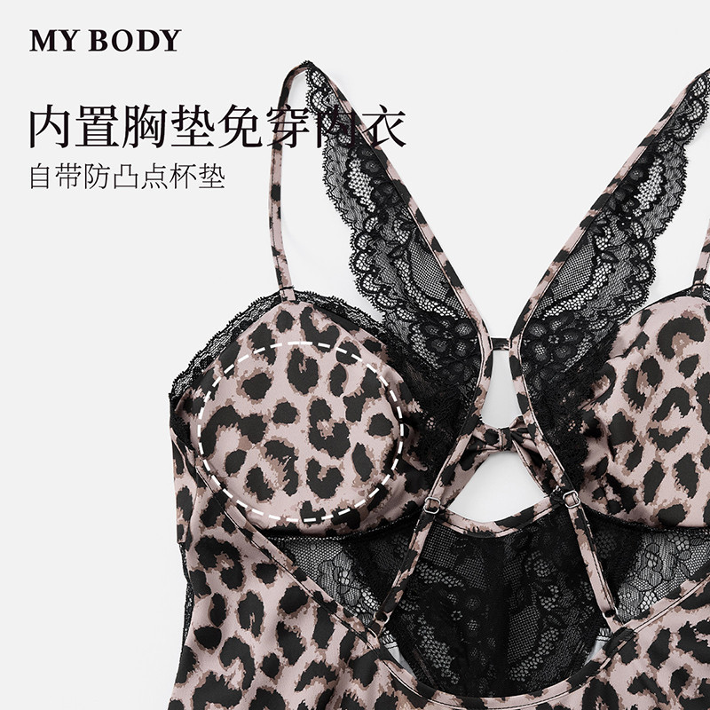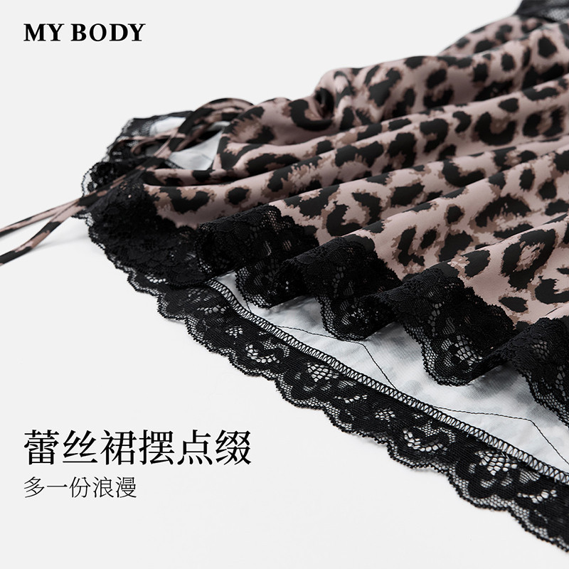 MYBODY商场同款夏季新款法式纯欲性感豹纹微透花卉蕾丝吊带睡裙女
