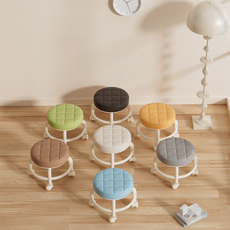 万向轮小凳子家用可移动换鞋凳现代简约滑轮矮凳静音圆凳儿童凳子