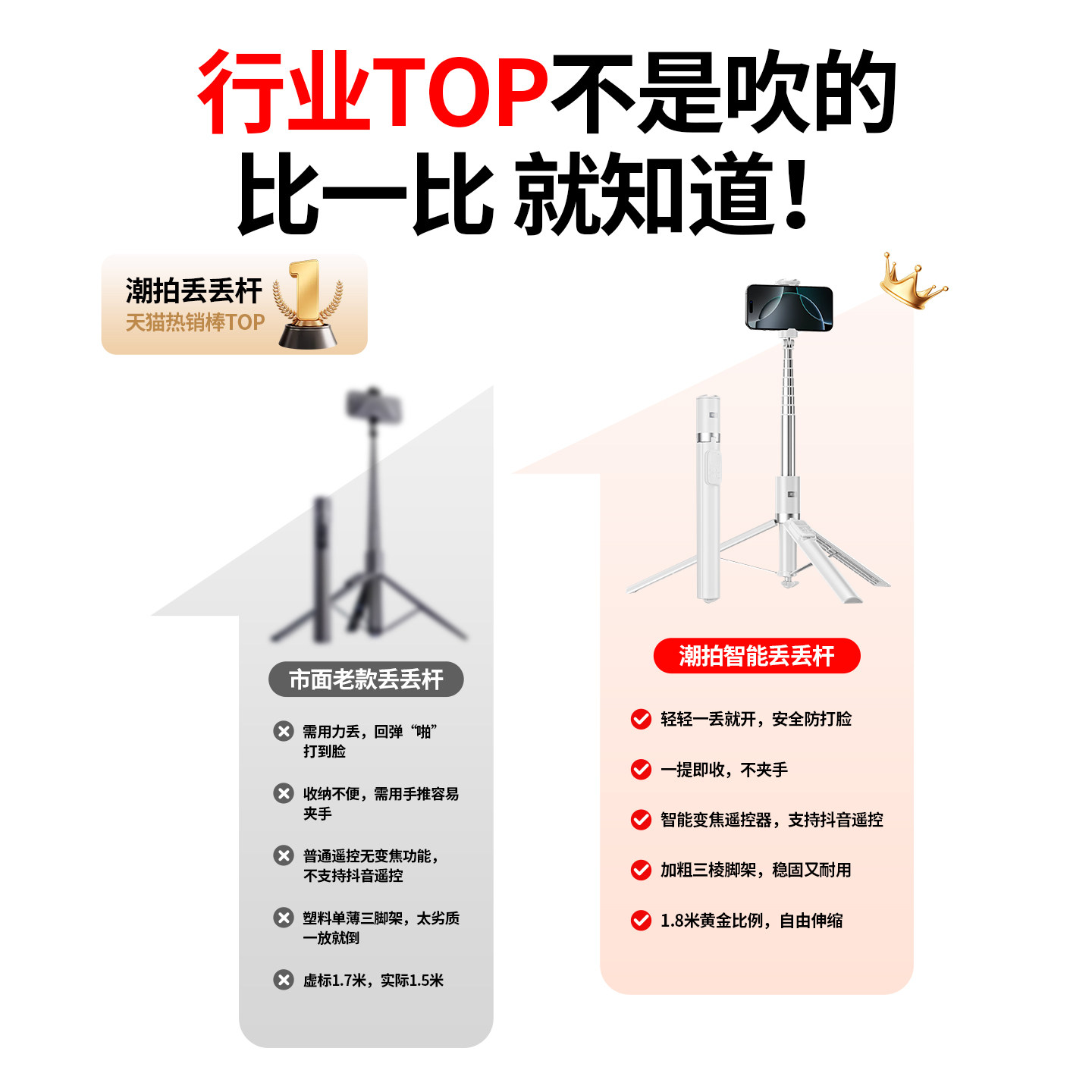 潮拍品牌【遥控丢丢杆】2025新款自拍杆通用全自动手机自拍支架落地三脚架旅游便捷手持专用拍照神器伸缩