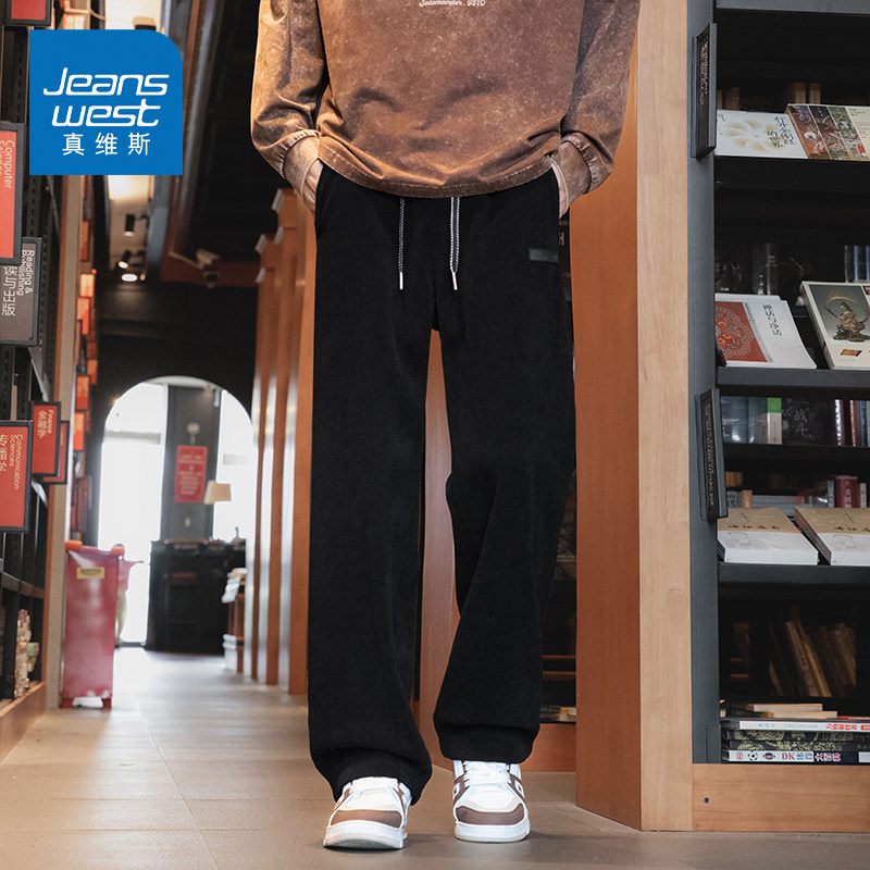 KZH真维斯加绒直筒松紧腰运动休闲长裤男卫裤灯芯绒条绒男裤秋冬