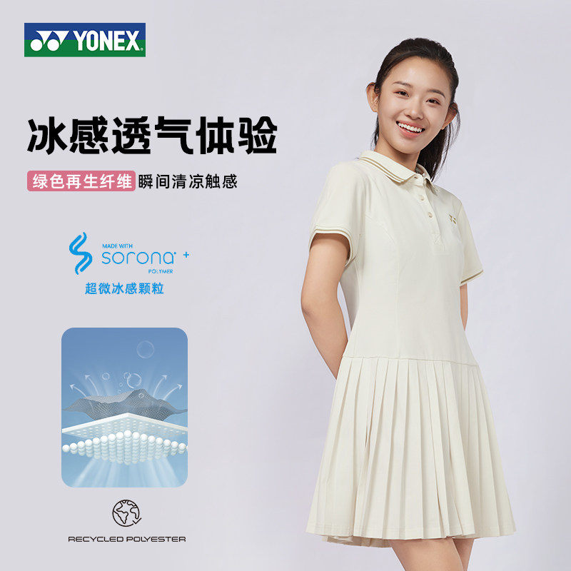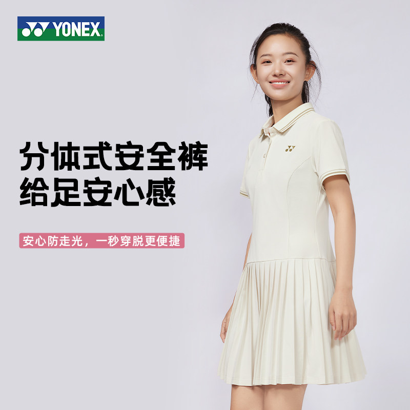 YONEX尤尼克斯羽毛球服女款连衣裙运动服透气网球服短裙2025新款