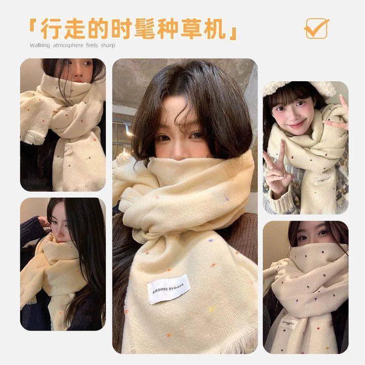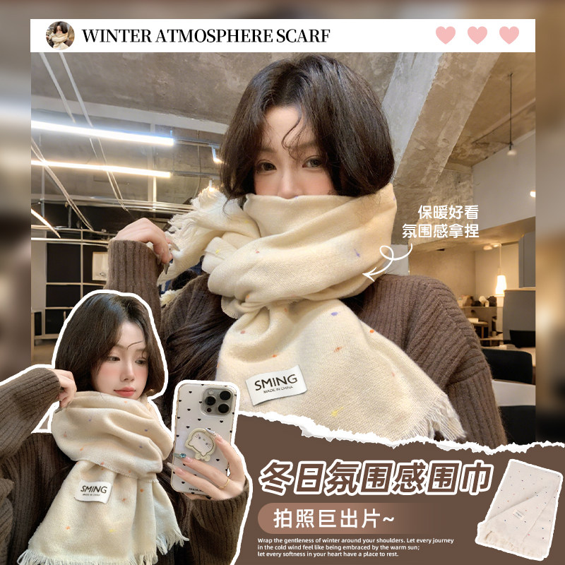 白色围巾女秋冬季2025新款韩系百搭可爱学生保暖高级氛围感围脖潮