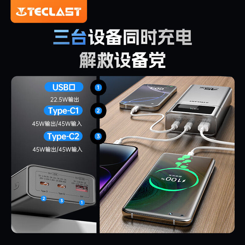 【国家3c认证】台电2025新款充电宝20000毫安大容量45W超级快充适用华为小米苹果17ProMax手机平板电脑笔记本
