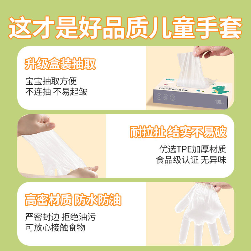 儿童一次性手套食品级专用PE独包小包幼儿宝宝餐桌吃饭加厚耐用
