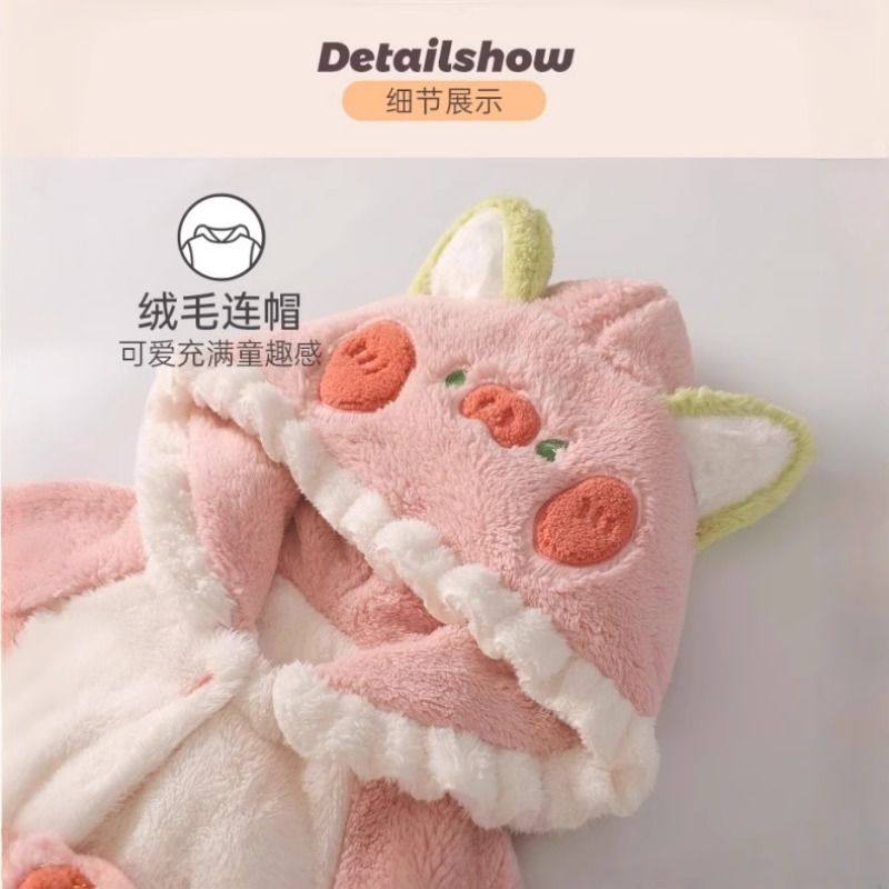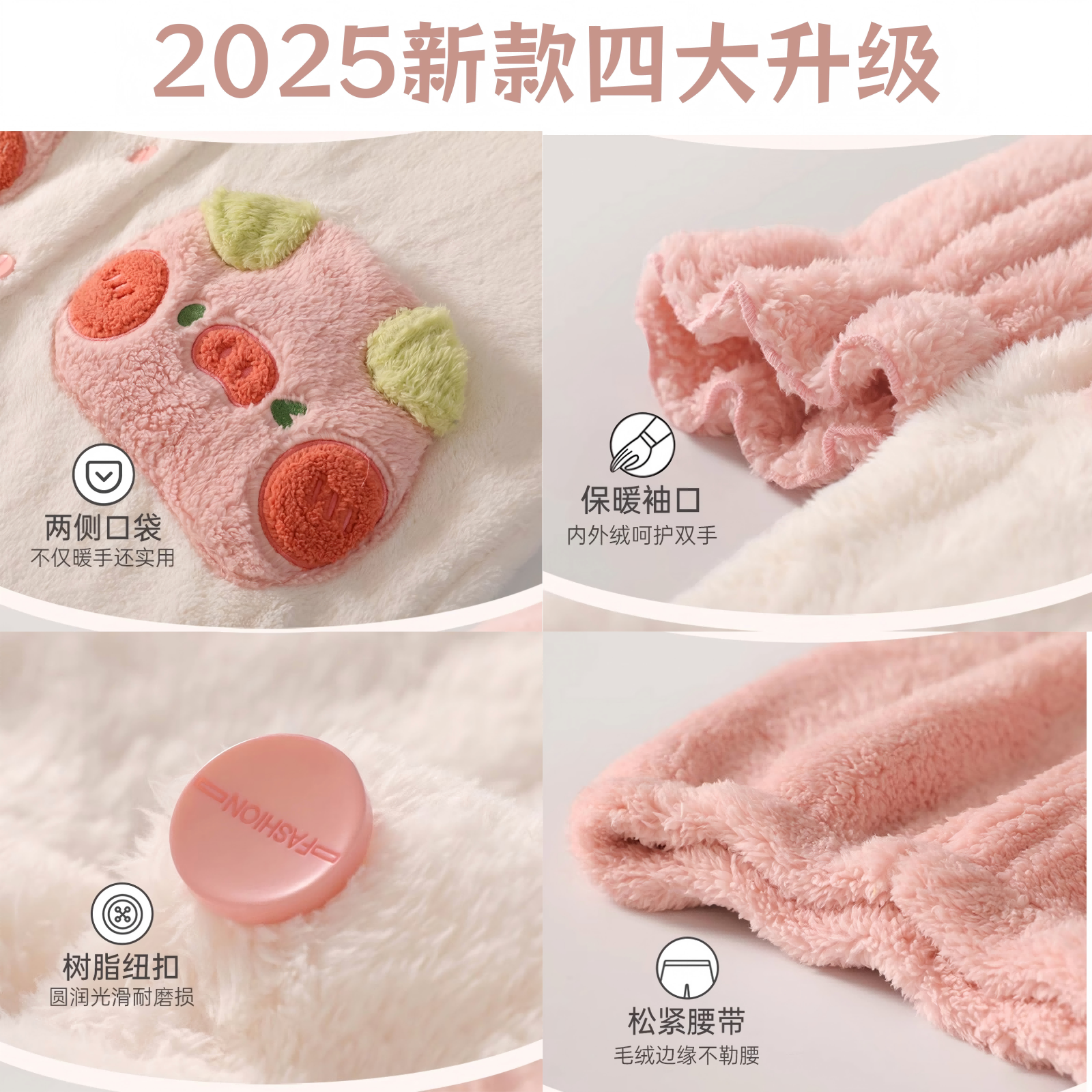 睡衣女款秋冬季珊瑚绒加绒加厚法兰绒浴袍冬天睡袍可爱家居服新款