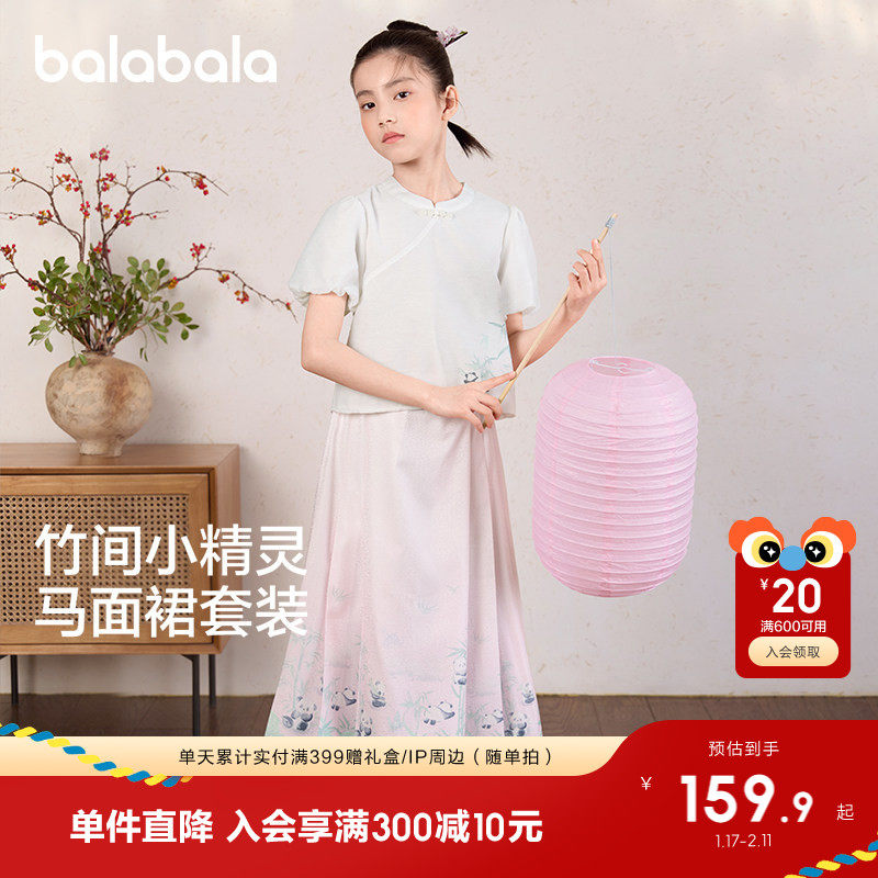 巴拉巴拉童装国风两件套夏款熊猫汉元素儿童套装马面裙新中式裙子