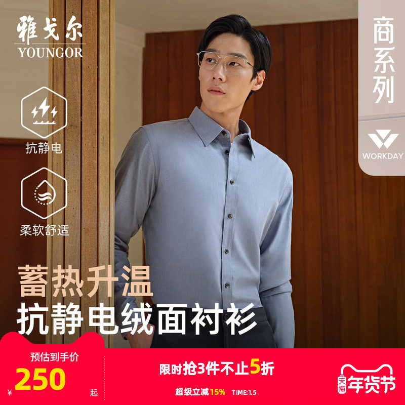 【绒面蓄热升温】雅戈尔官方秋季新商务休闲保暖抗静电长袖衬衫男