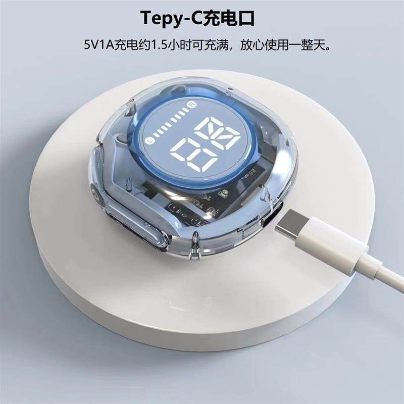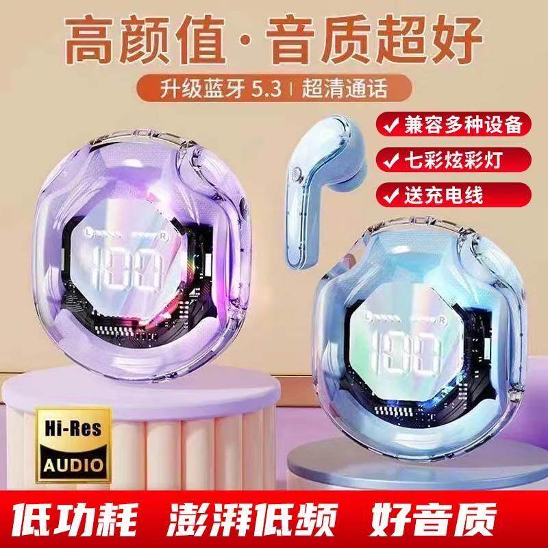 新款数显高颜值运动入耳式无线蓝牙耳机透明续航苹果安卓降噪通用