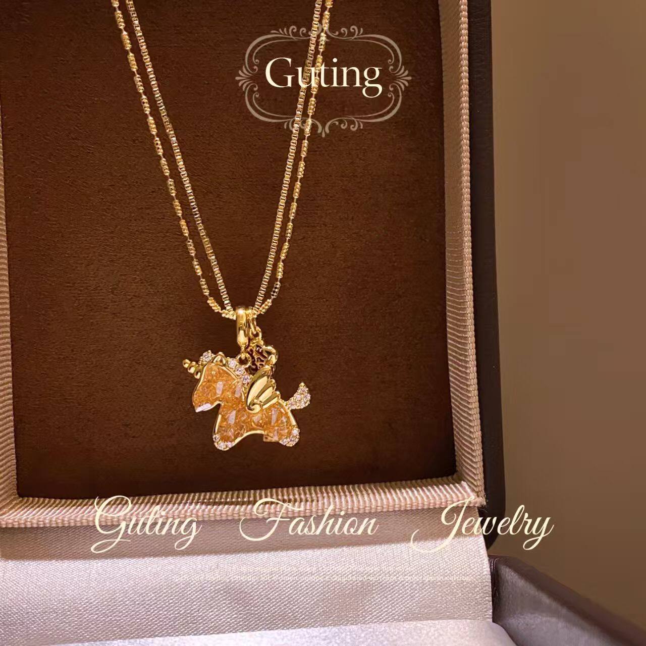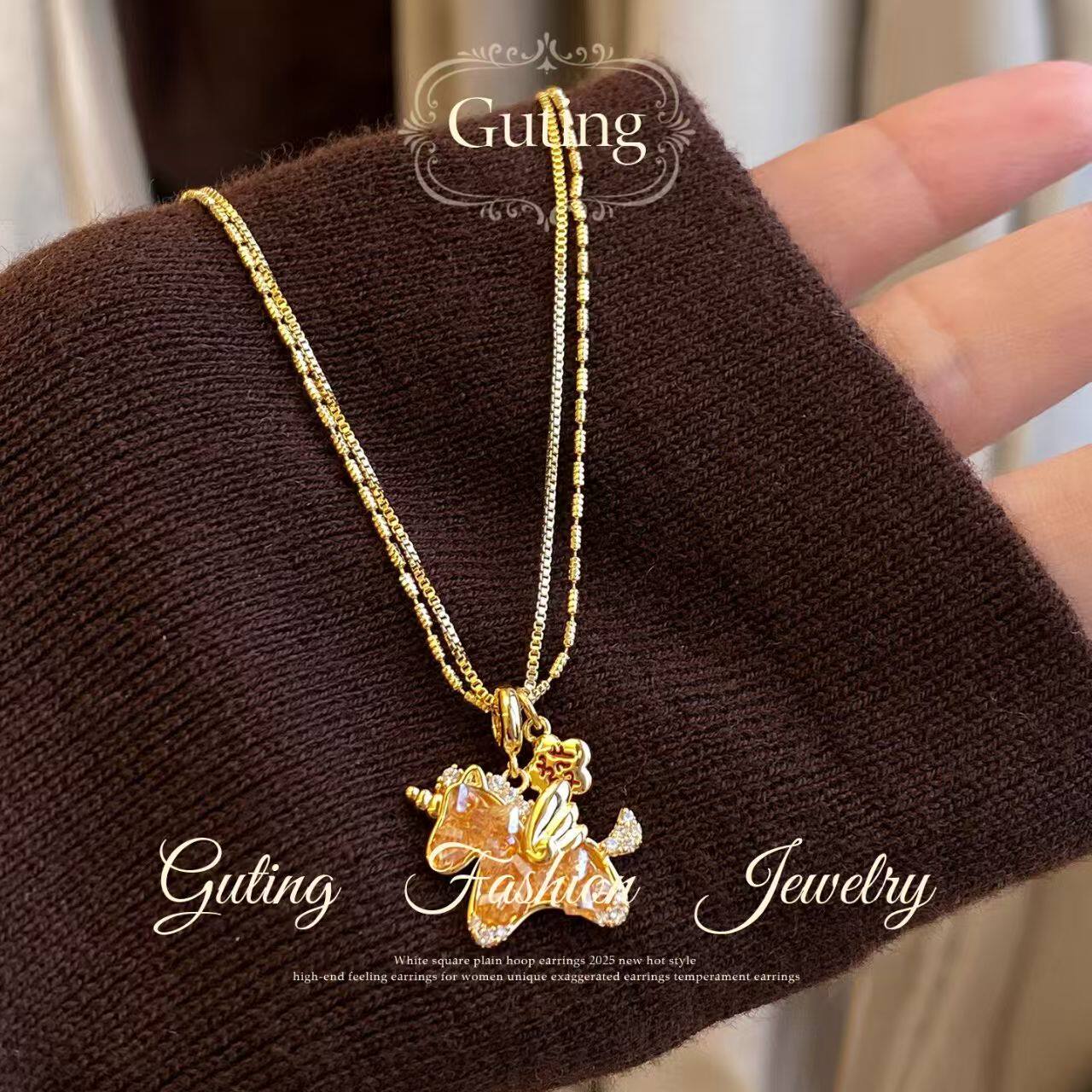 金色马年吊坠满钻项链女高级感轻奢小众配饰品2026新款爆款首饰品