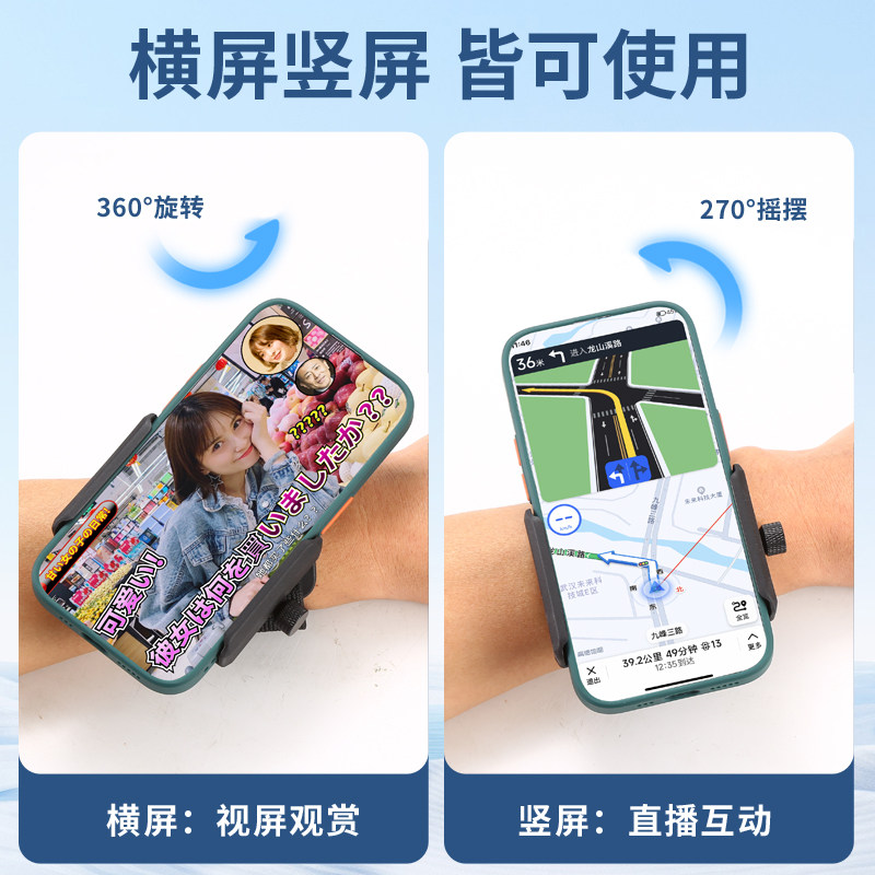 网红直播磁吸分拆式手腕支架户外走播行走唱歌跳舞跑步旋转手戴支架钓鱼登山骑行代驾外卖手机腕包男女款通用