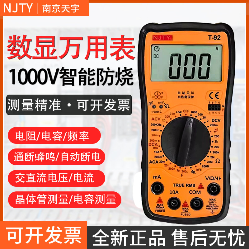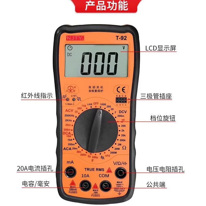 天宇数字万用表T-33数显万能表自恢复式全保护保险管防烧保护T92