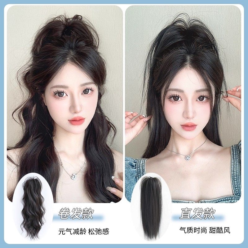 瀑布半扎抓夹高马尾假发女网红蓬松高颅顶y2k卷发喷泉长发马尾辫