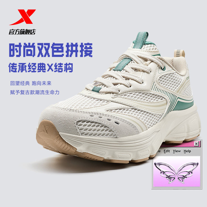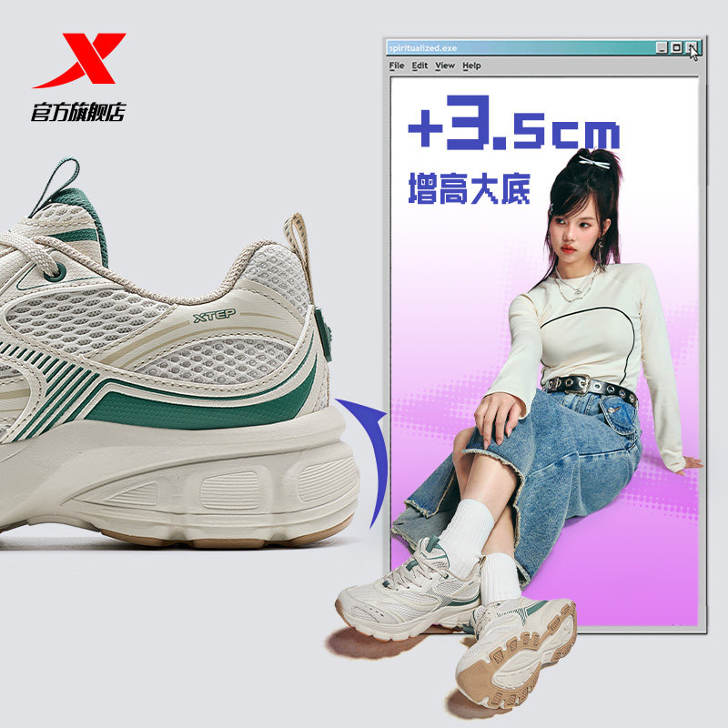 特步Y2K跑步鞋女秋冬革网舒适情侣复古老爹鞋跑鞋运动鞋男休闲鞋