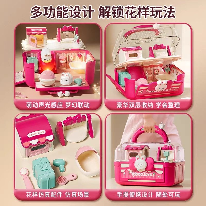 一言粉红兔迷你小屋冰淇淋贩卖店小兔子卧室厨房女孩过家家玩具