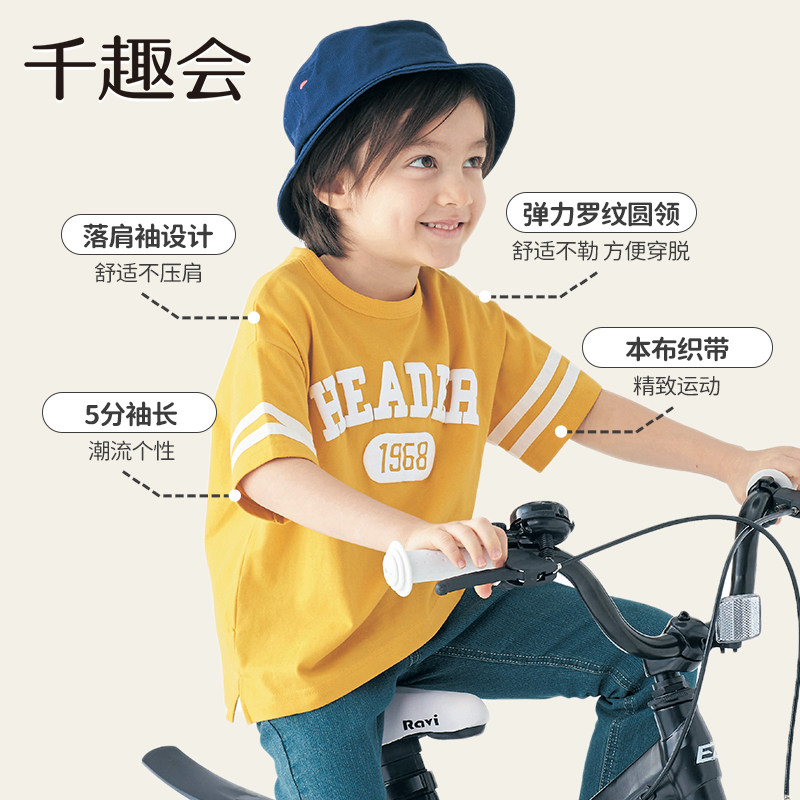 千趣会童装儿童夏装短袖T恤落肩袖休闲数字印花纯棉男童打底上衣