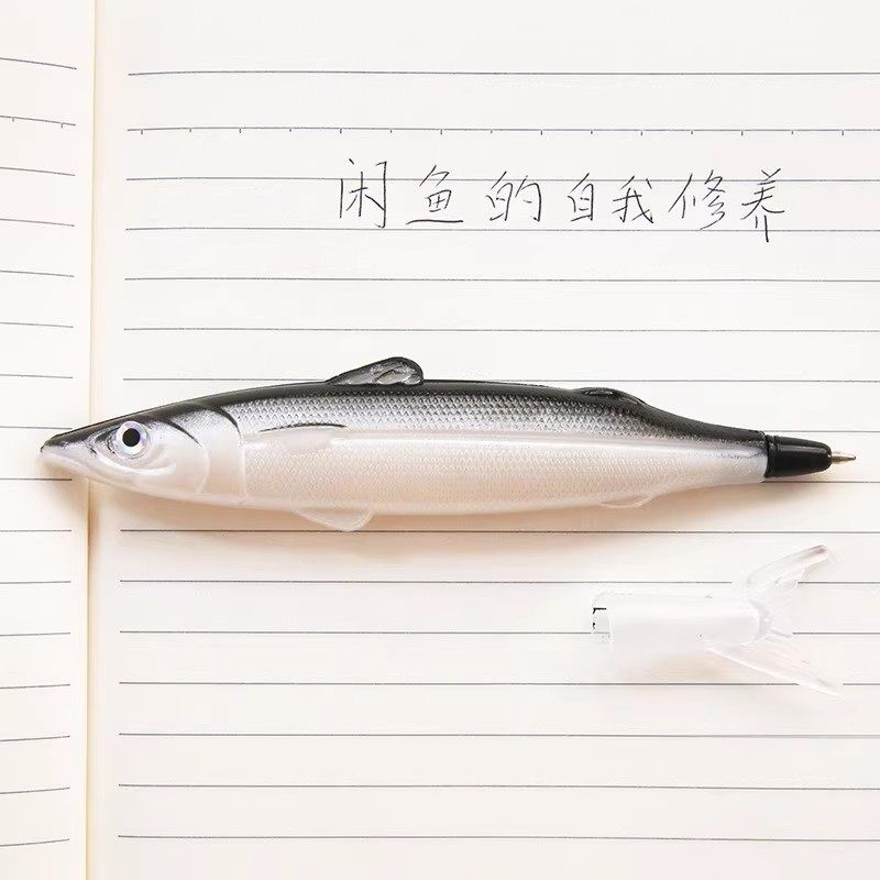 无聊了一起摸摸鱼造型笔创意学生搞怪文具圆珠笔0.5m黑仿真闲咸鱼