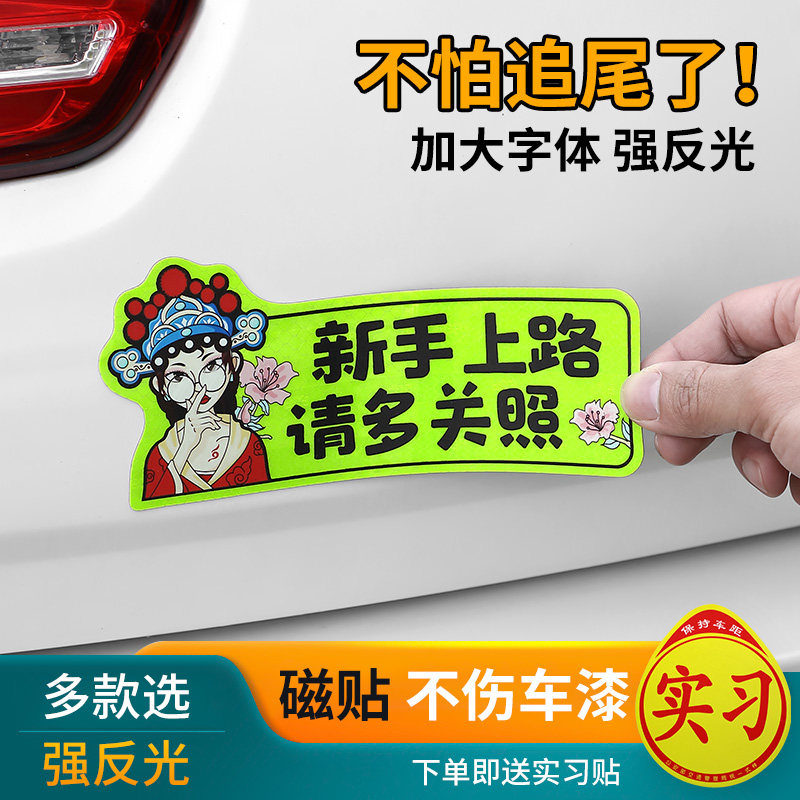 新手上路女司机实习期标志车贴磁吸汽车磁贴创意磁性搞笑反光贴纸