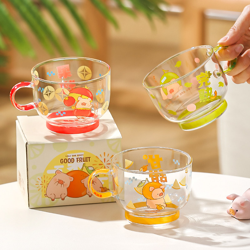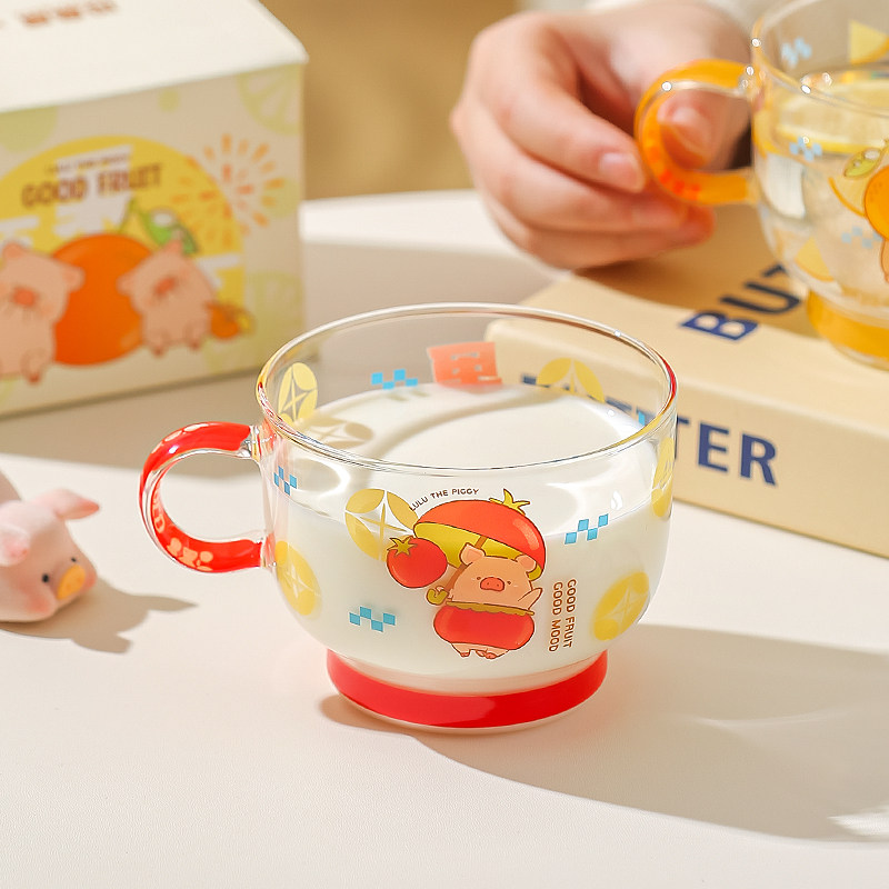 川岛屋&lulu猪联名 可爱玻璃杯女高颜值家用水杯果汁牛奶杯早餐杯