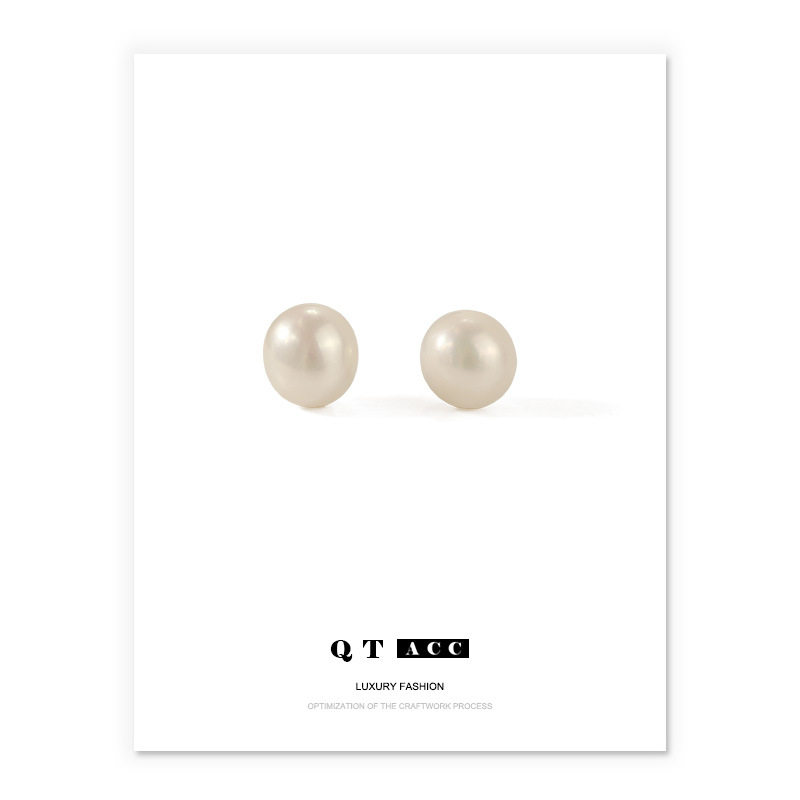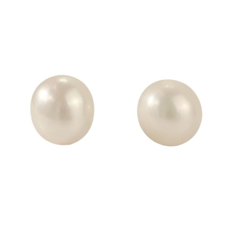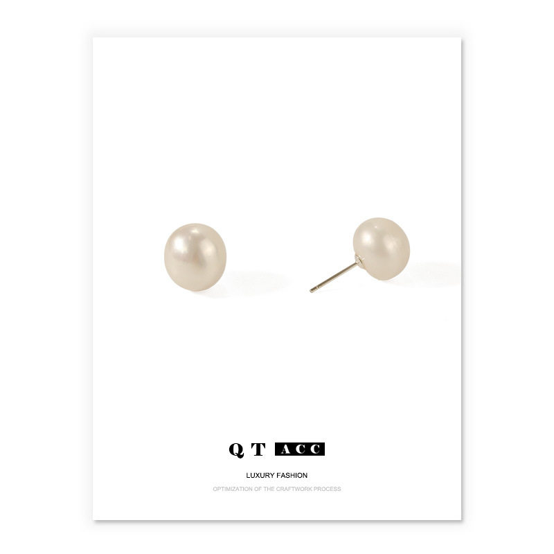 s925纯银天然淡水珍珠耳钉扁圆韩国女可爱银饰品耳饰品气质耳环