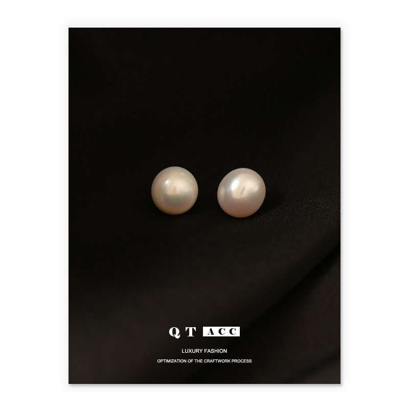 999纯银耳钉女施家珍珠馒头珠耳环扁圆高级气质法式复古轻奢耳饰