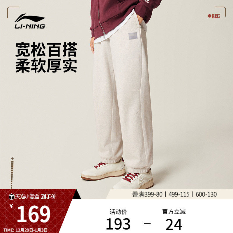 李宁卫裤男子休闲裤时尚宽松裤子柔软厚款针织束脚裤运动长裤男款
