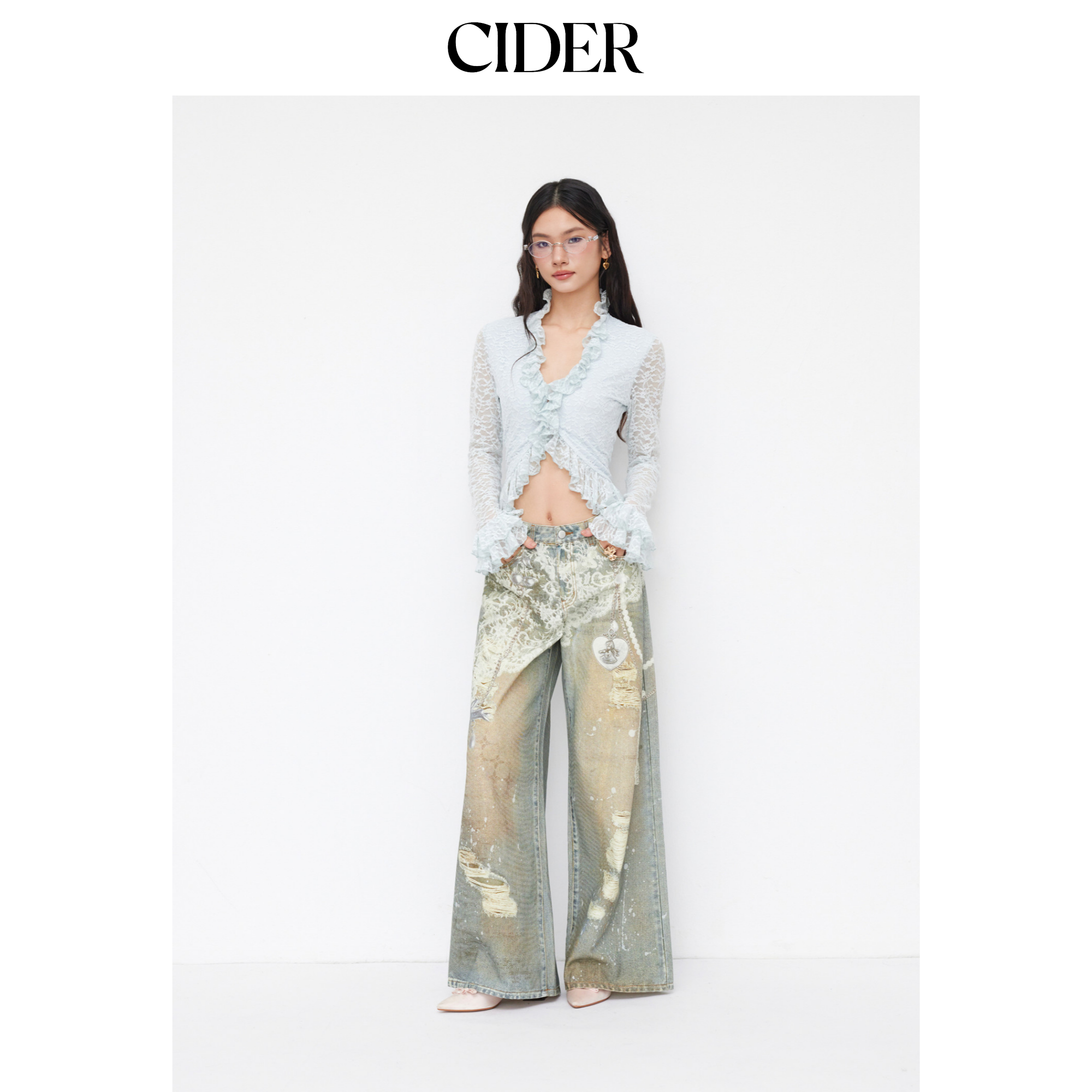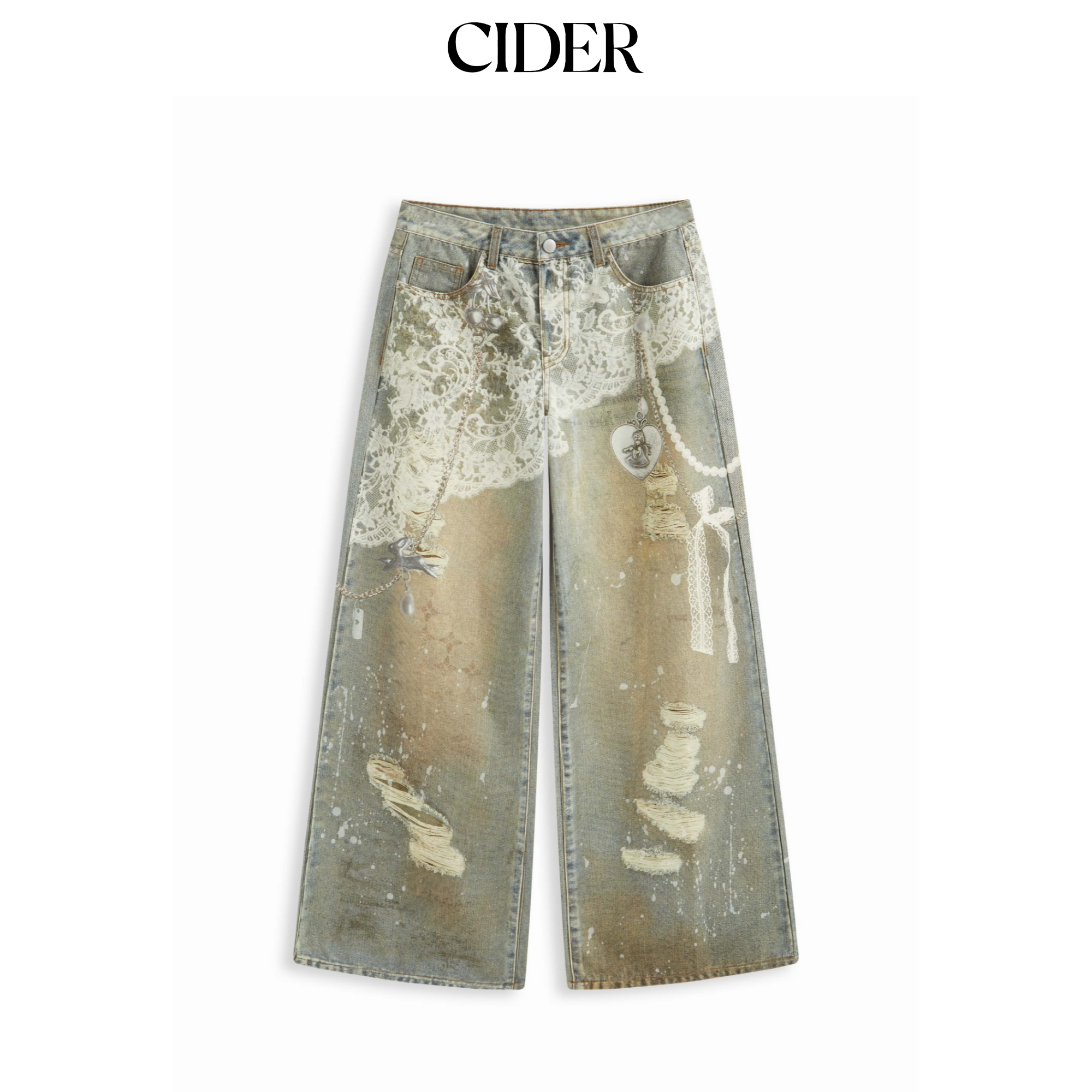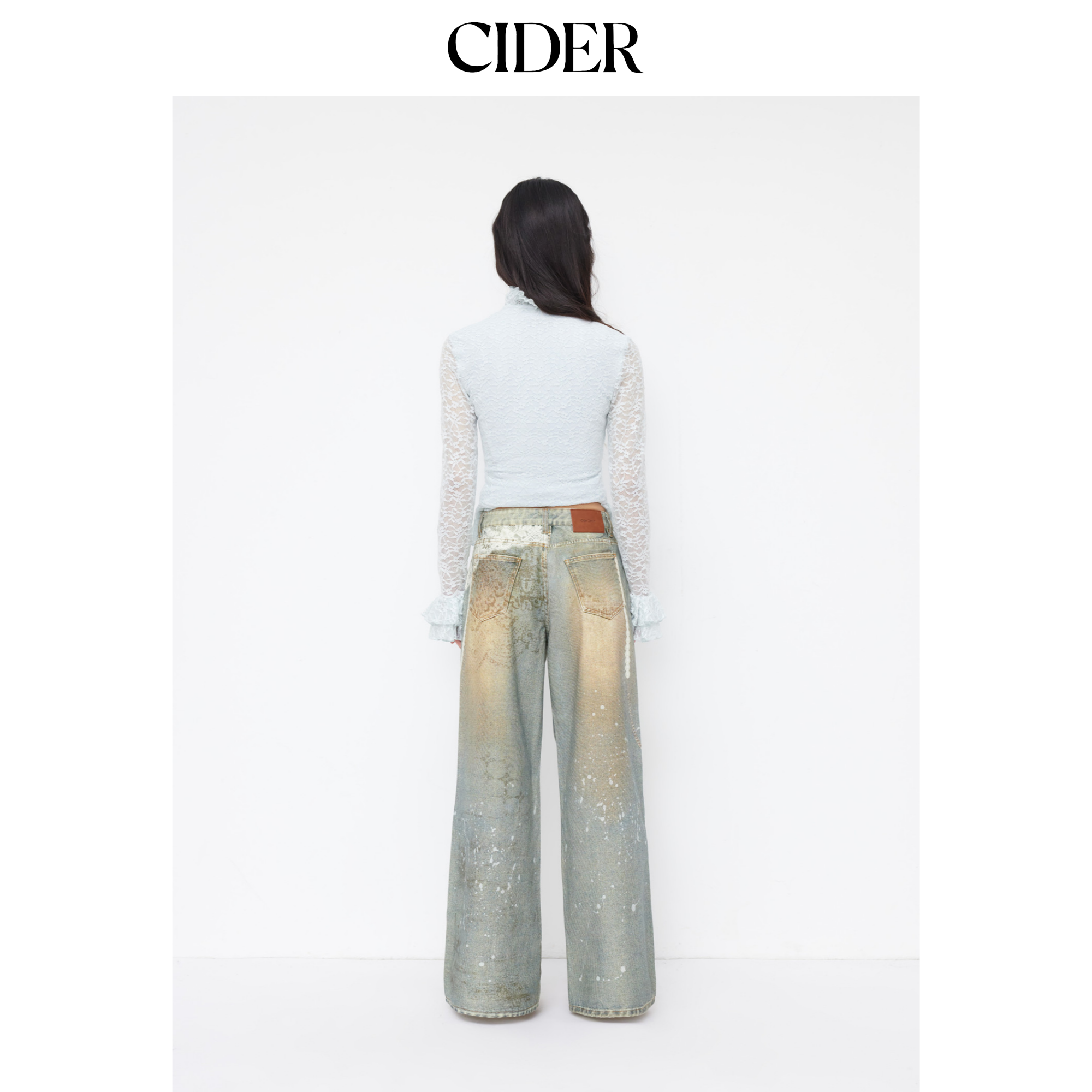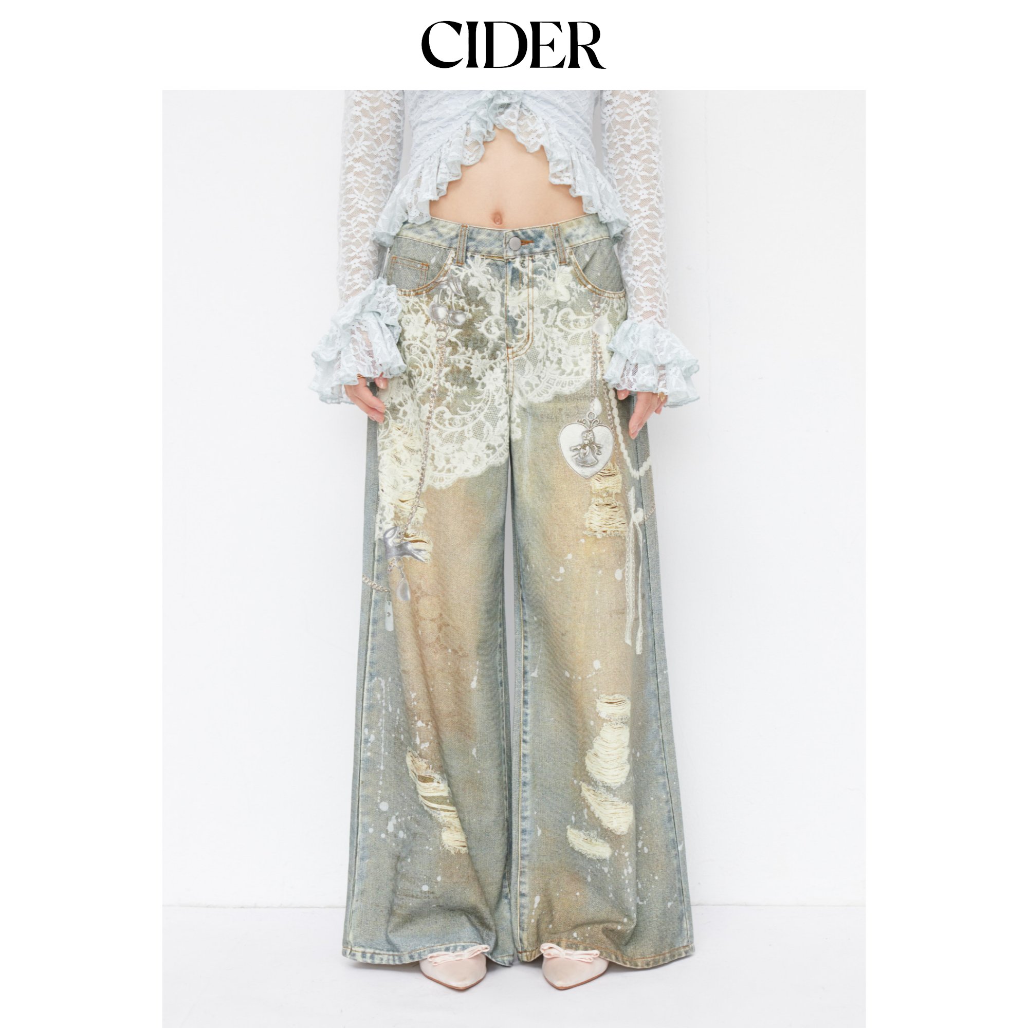 CIDER 春秋新品女装印花阔腿低腰牛仔八分裤114828481