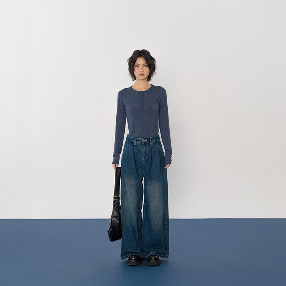 QUEENSHOP 2025秋冬新品女装休闲原色低腰宽版牛仔长裤04011844