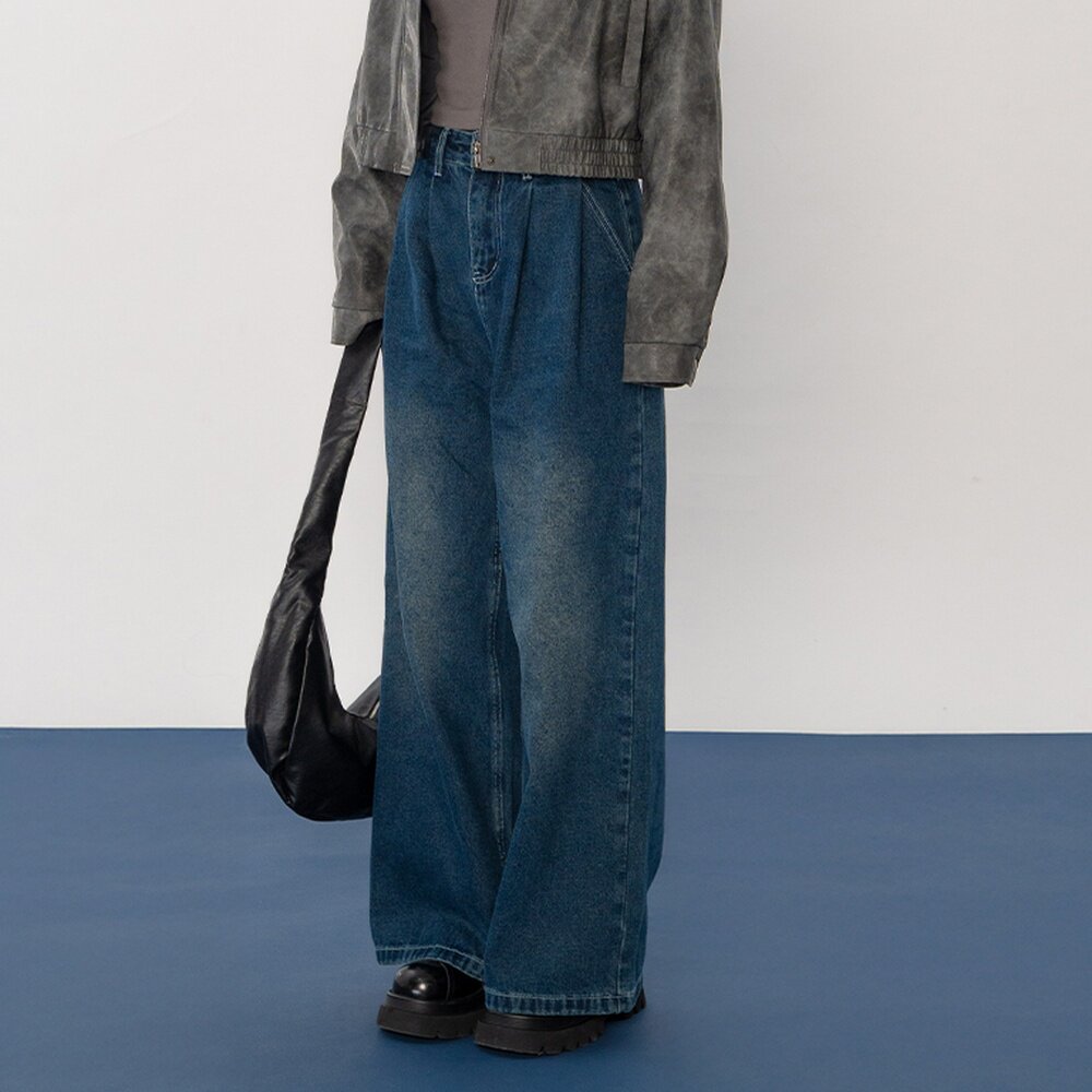 森马牛仔裤女春季打褶长裤宽松2026新款弯刀裤甜酷美式高街阔腿裤
