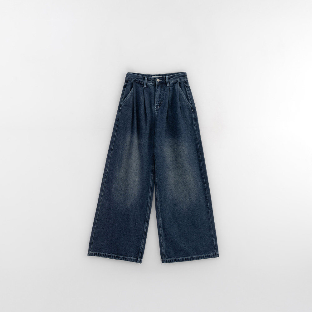 三福牛仔长裤2025新款冬季磨毛阔腿裤复古深色宽松裤子女装512304